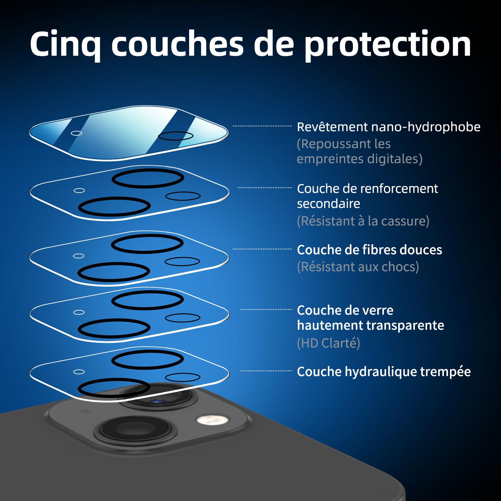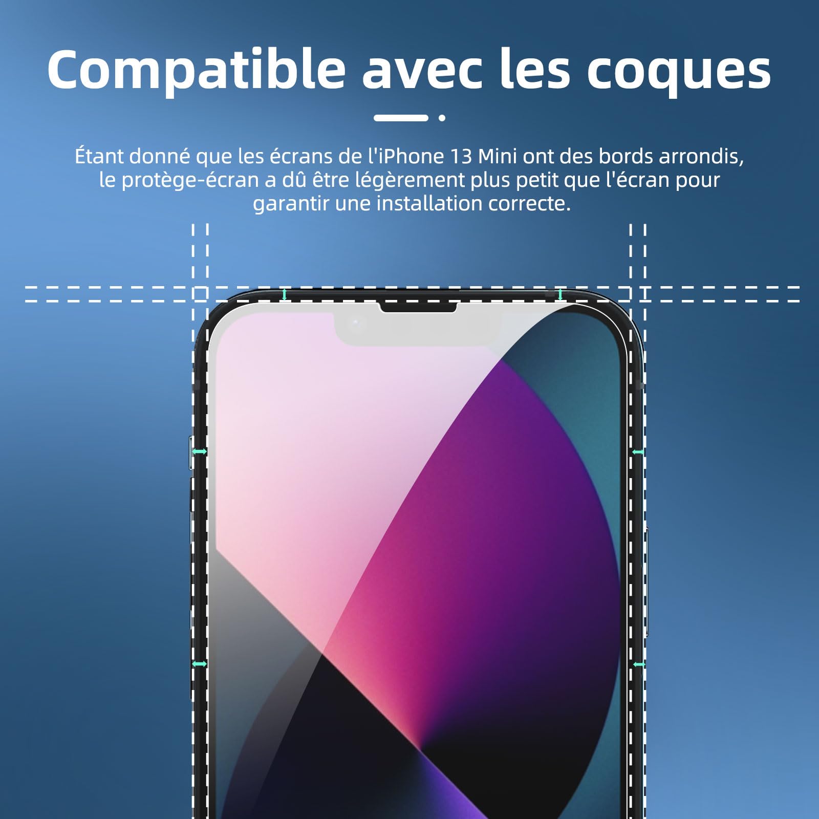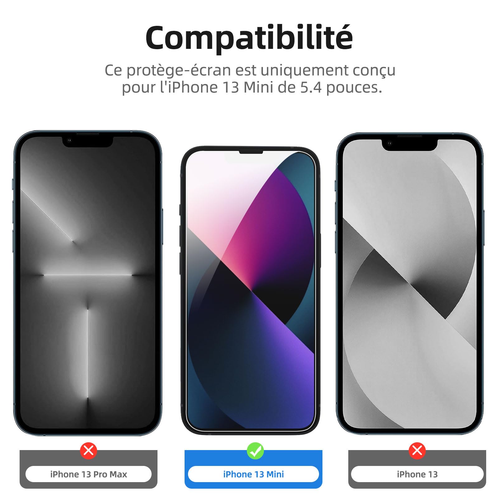 - Contenu : 2* Verre Trempé écran Protecteur et 2* Caméra Lentille Protecteur pour iPhone 13 Mini. Une double protection avant et arrière du téléphone