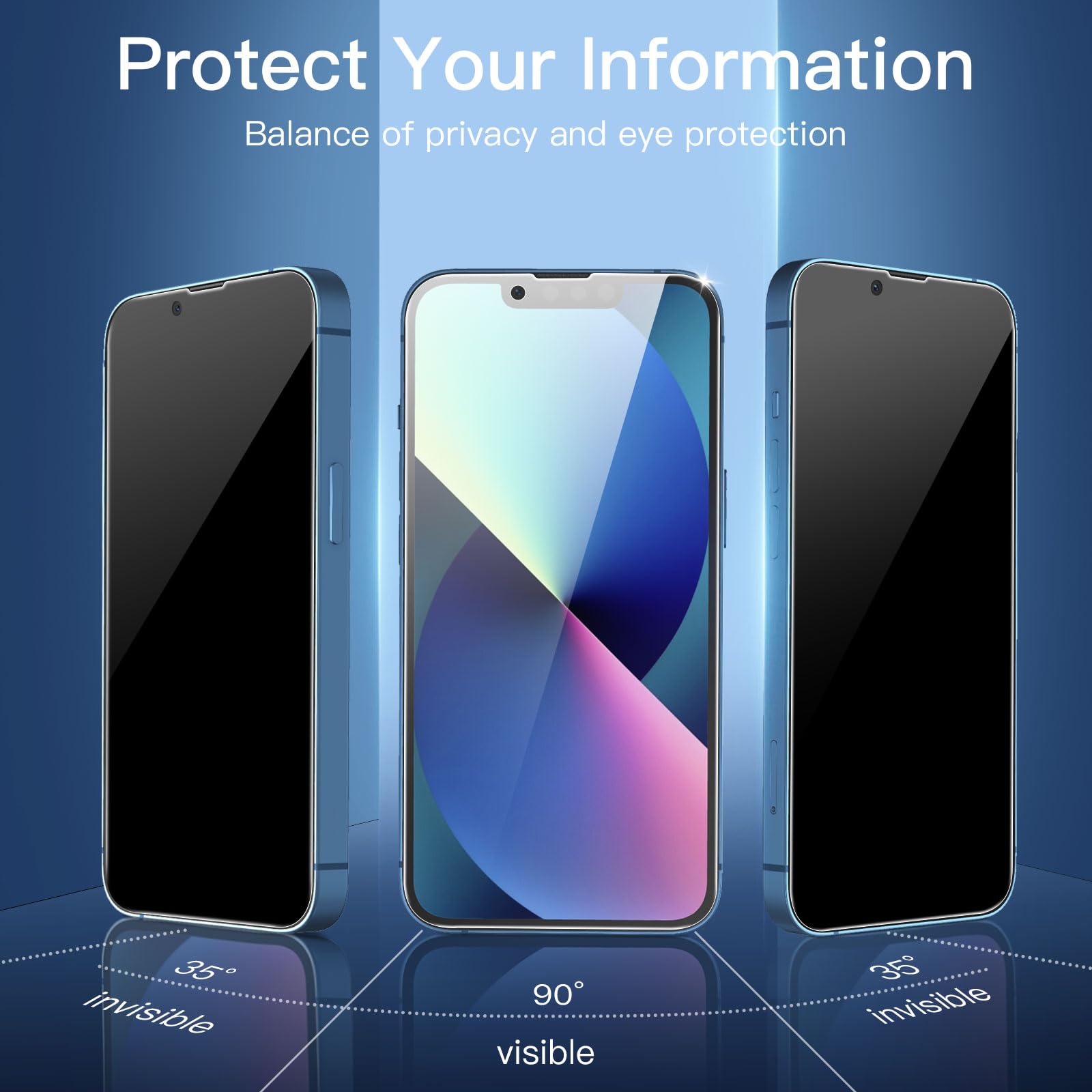 Protection d’écran en verre trempé anti-espion pour iPhone 14, iPhone 13 et iPhone 13 Pro, offrant une confidentialité à 35 degrés et une dureté 9H.
