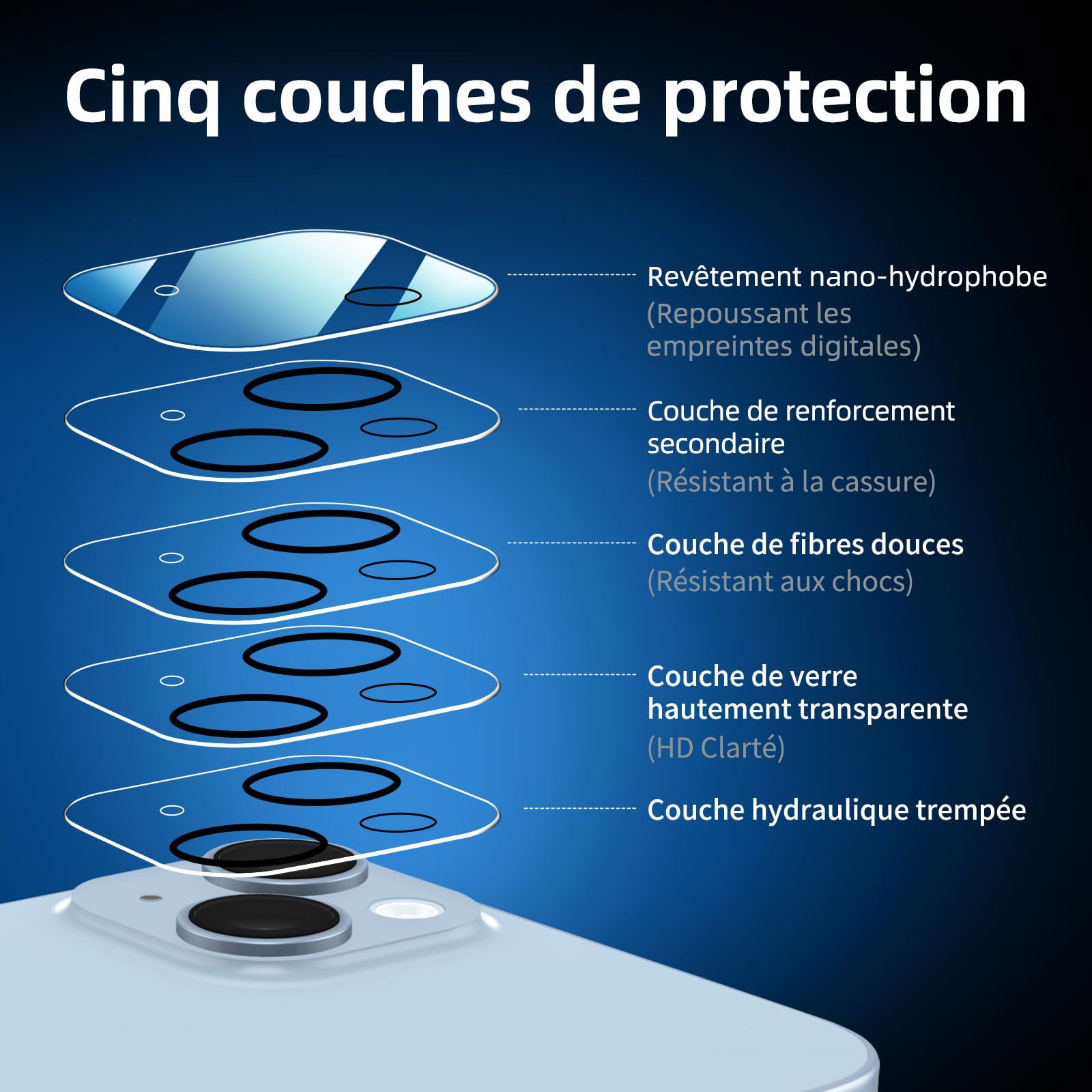 – **Protection Complète**: En plus de trois protections d’écran, le kit inclut également trois protections pour la caméra arrière, offrant une protection totale pour votre iPhone 14 Plus.