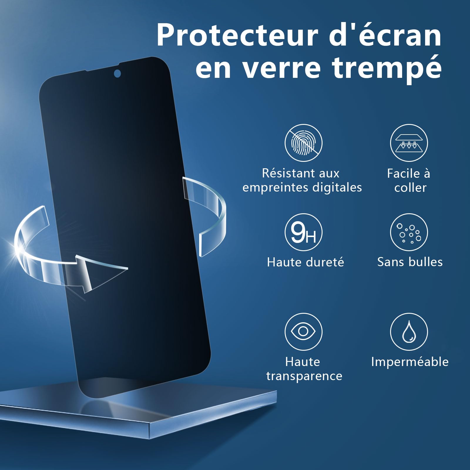 - Lot de 3 Verres Trempés Anti-Espion pour iPhone 14 Pro. Dureté 9H, résistance aux raillures, Confidentialité améliorée pour les environnements à haute sécurité.