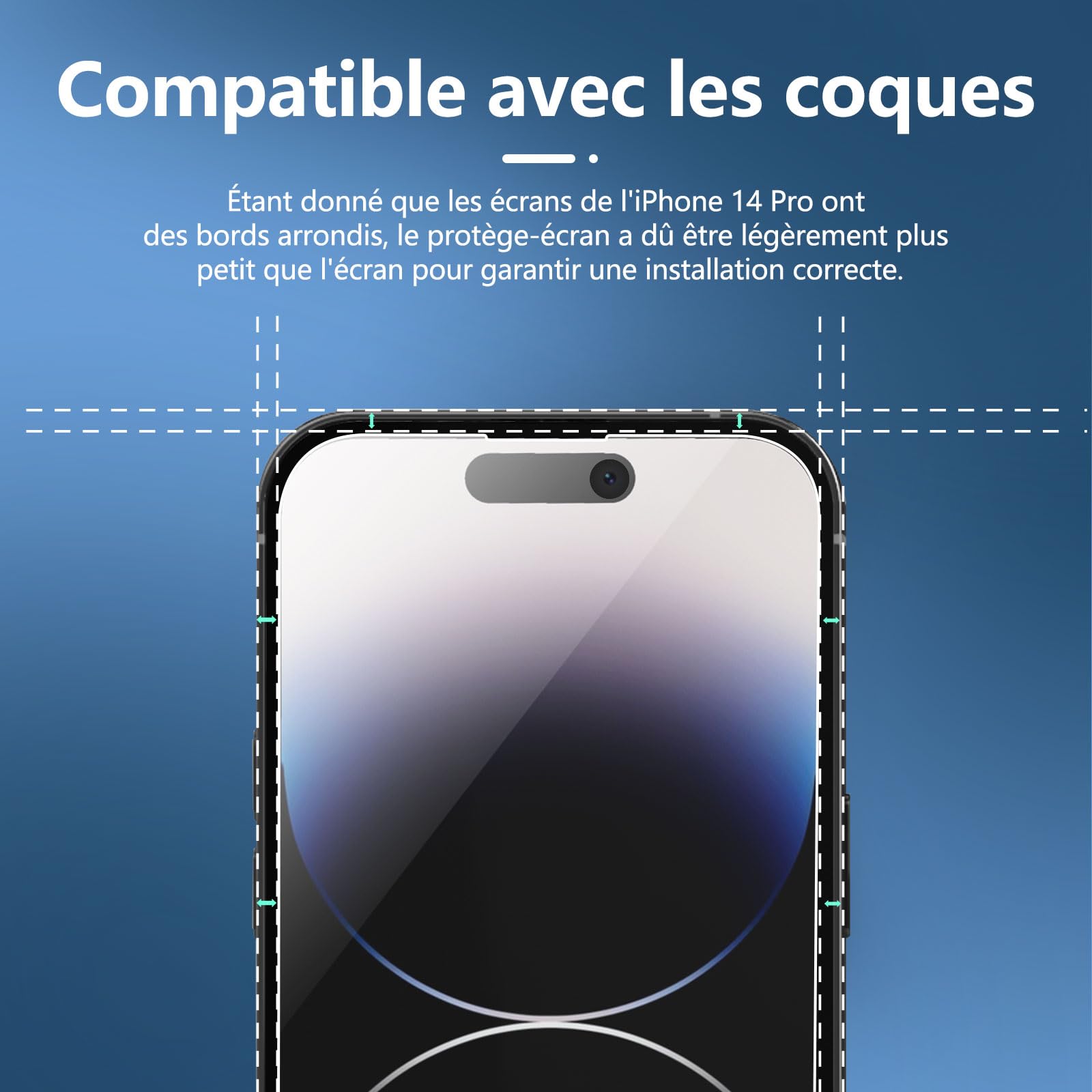 R : Oui, ce Protection d’écran Verre trempé iPhone 14 Pro est parfaitement compatible avec : iPhone 14 Pro.
