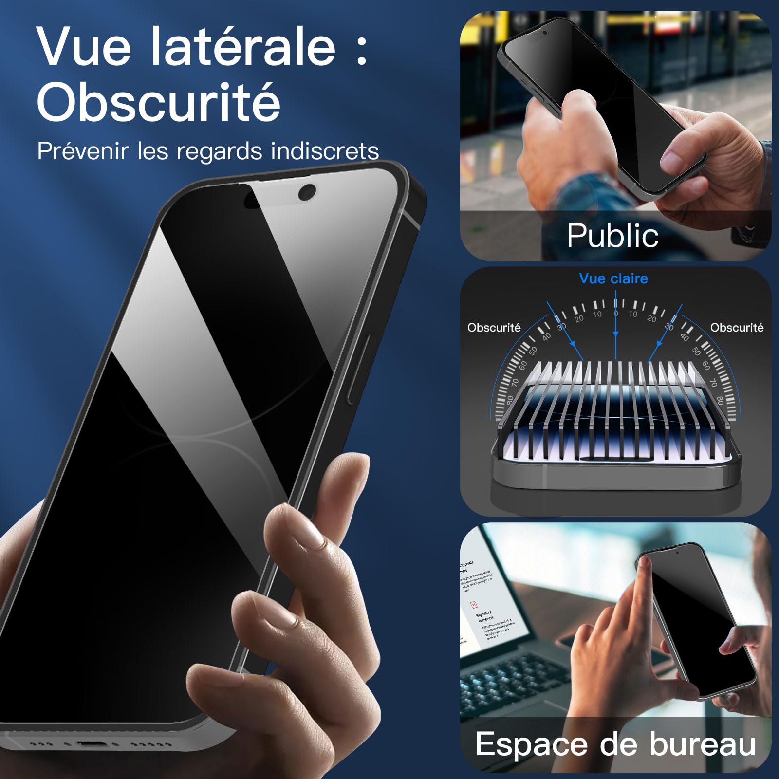 - Le film anti-espion peut protège la confidentialité des données sur l’écran. Réduit l’angle de vision pour empêcher les regards indiscrets.Garde les informations confidentielles hors de la vue des tiers.
