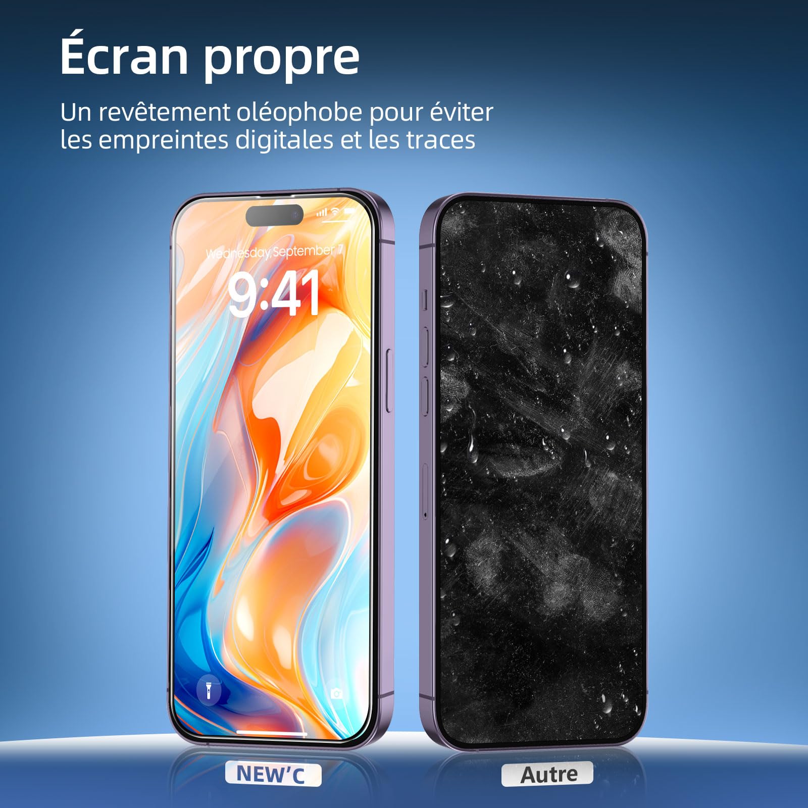 NEW’C Lot de 3, Verre Trempé pour iPhone 14 Pro Max/ 14 Plus, iPhone 13 Pro Max (6,7 Pouces) Film en Protection écran à pose rapide Couverture Complète – Ultra Résistant – Efficace contre les Rayures