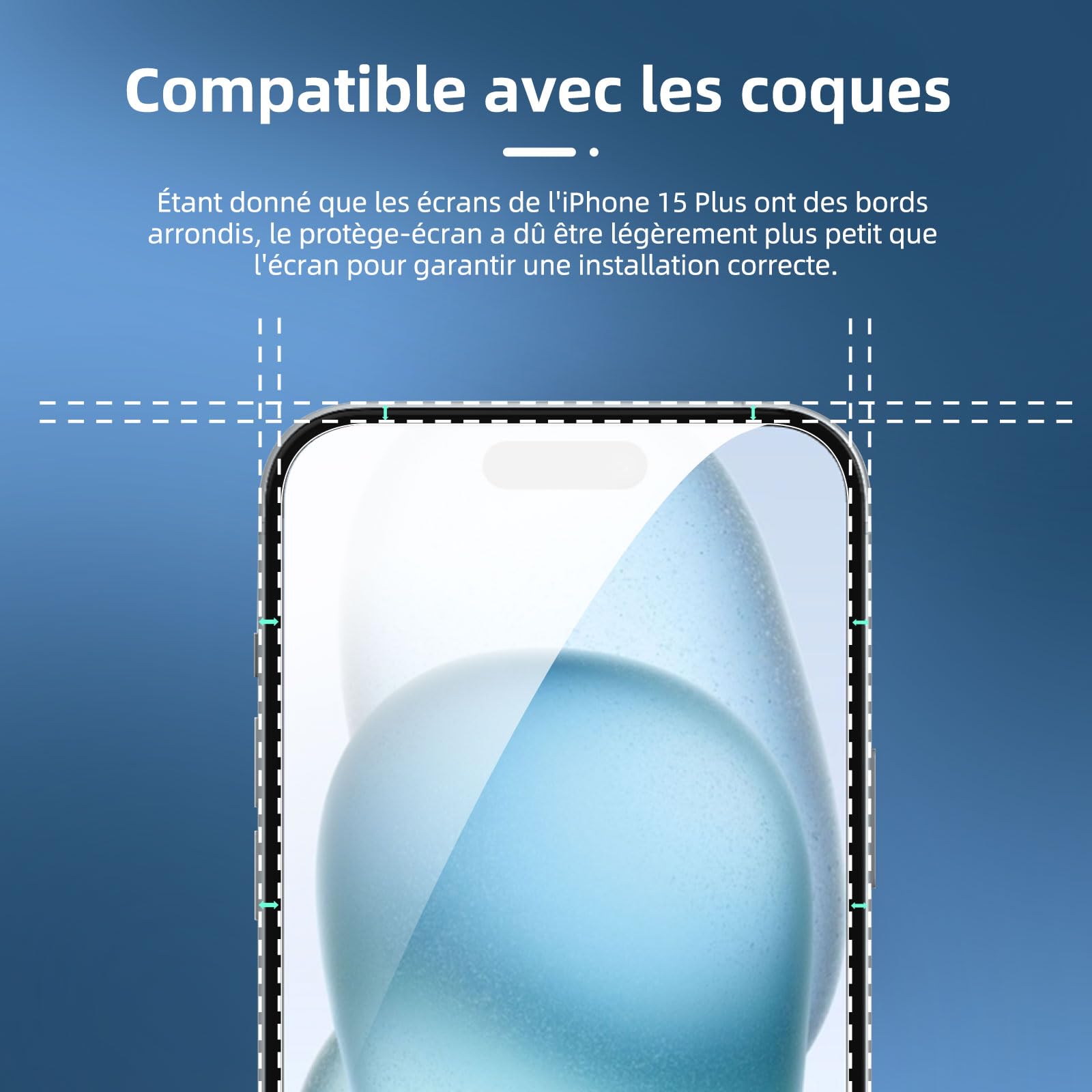 R : Oui, ce Protection d’écran Verre trempé iPhone 15 Plus est parfaitement compatible avec : iPhone 15 Plus.