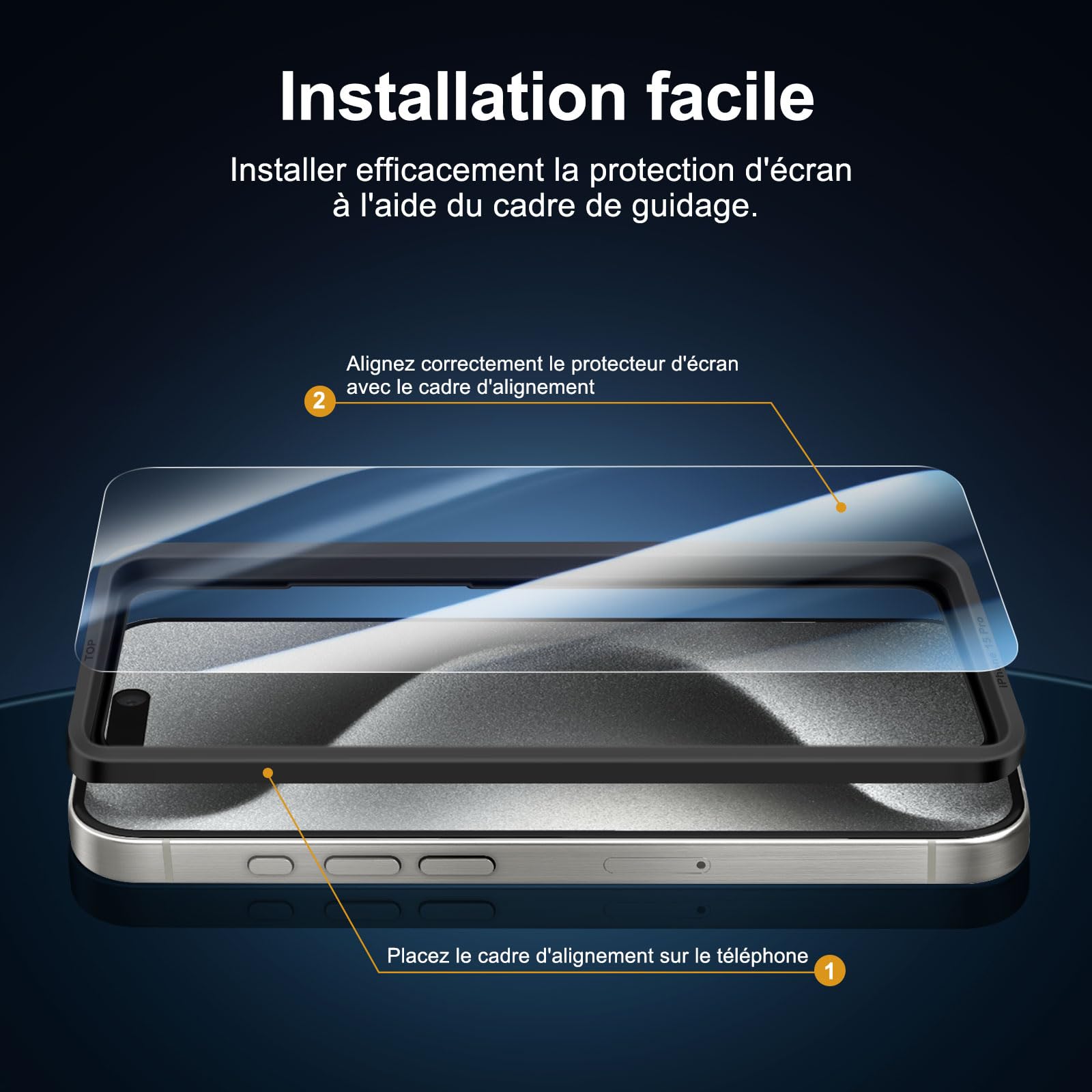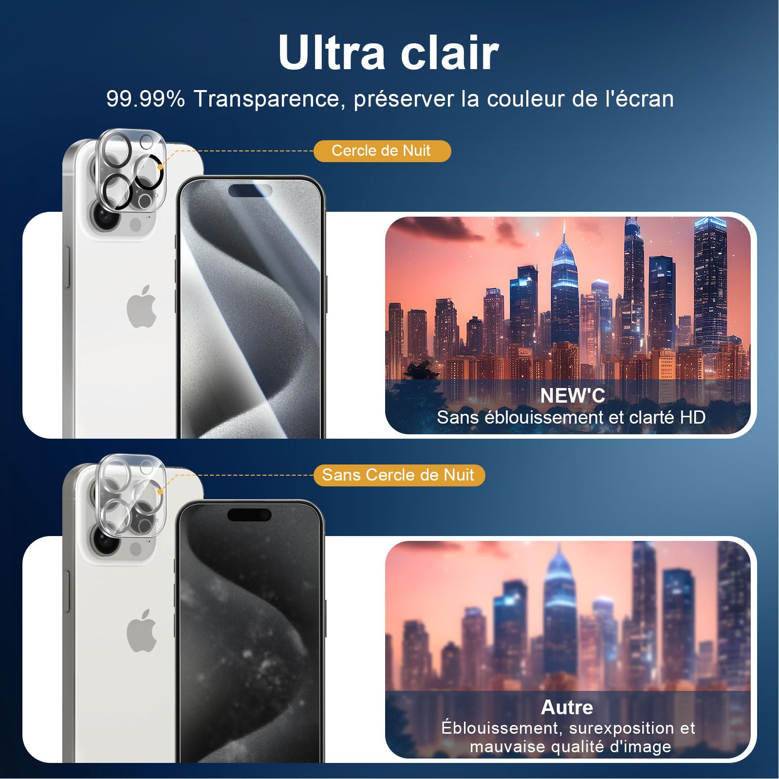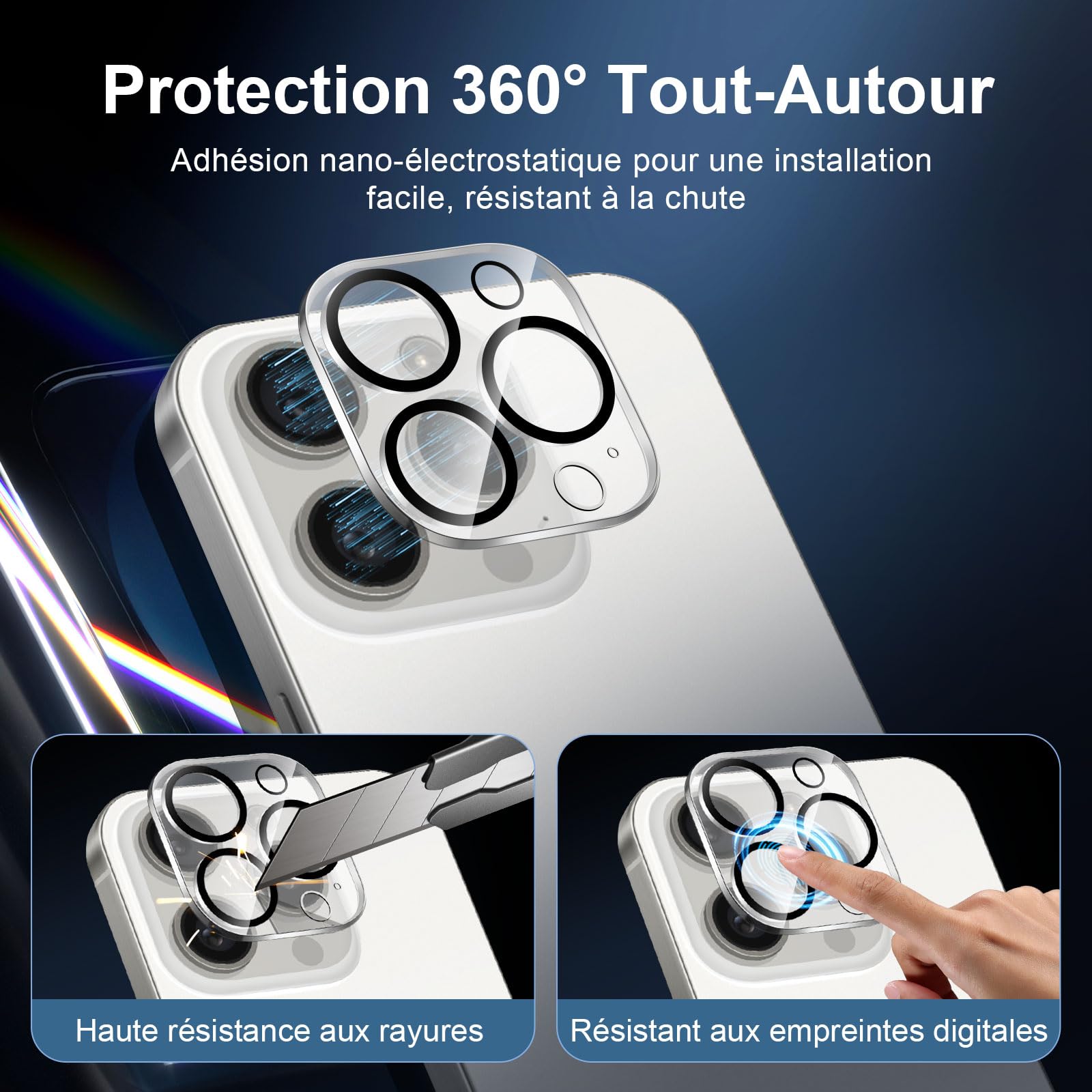- Contenu : 3* Verre Trempé écran Protecteur, 3* Caméra Lentille Protecteur pour iPhone 15 Pro (6,1 Pouces) et un outil d’installation facile et un bouchon anti-poussière. Une double protection avant et arrière du téléphone.