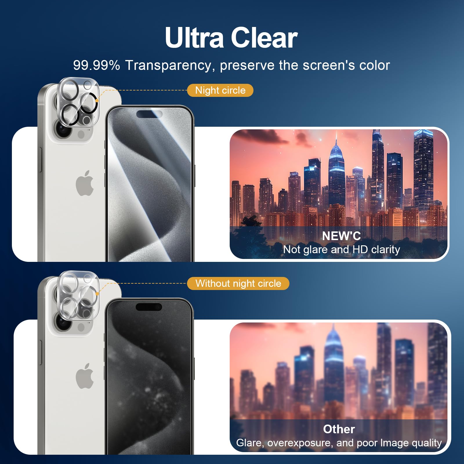 - Contenu : 2* Verre Trempé écran Protecteur, 2* Caméra Lentille Protecteur pour iPhone 15 Pro (6,1 Pouces) et un outil d’installation facile. Une double protection avant et arrière du téléphone.
