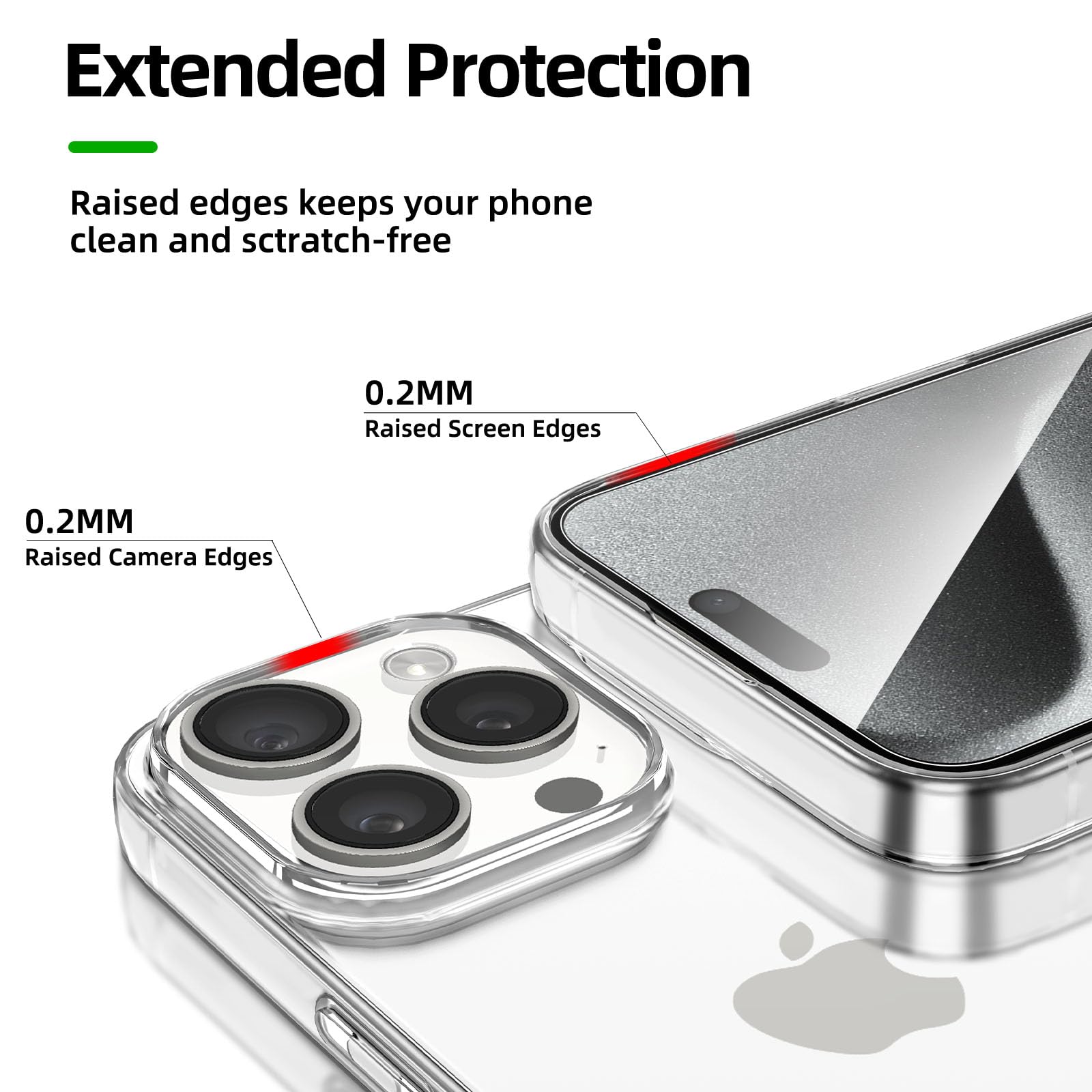 • Le lot contient 2 pièces de protection d’écran en verre trempé pour iPhone 15 Pro (6.1″) et une coque transparente pour iPhone 15 Pro (6.1″). Procure une protection maximale.