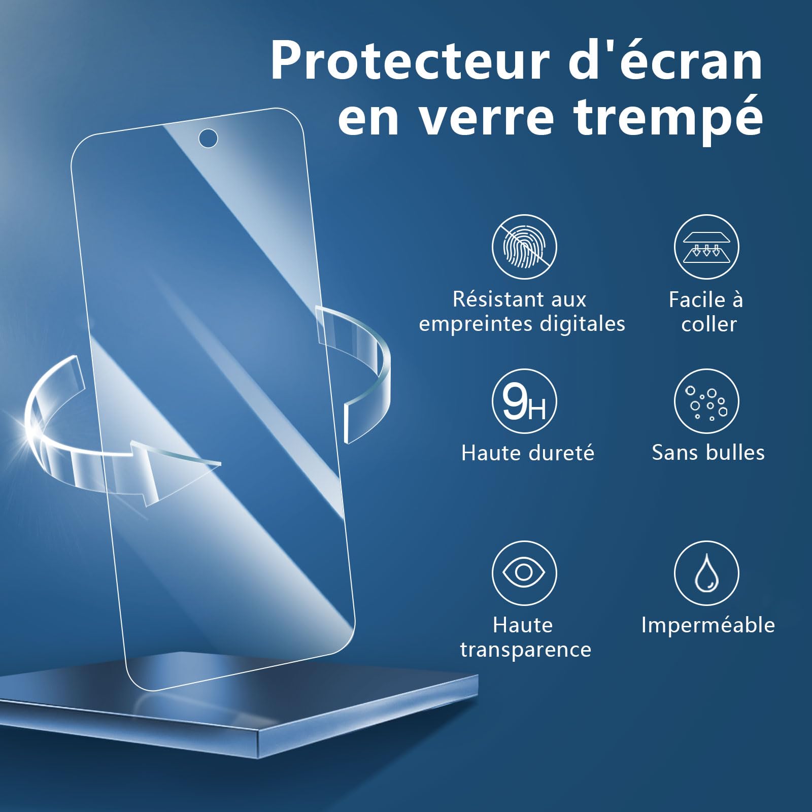 • Installation sans poussière, sans empreintes digitales, facile d’une simple pression, sans bulles. Oléophobe: un revêtement qui empêche les empreintes digitales et d’autres contaminants et rend le verre très facile à nettoyer.