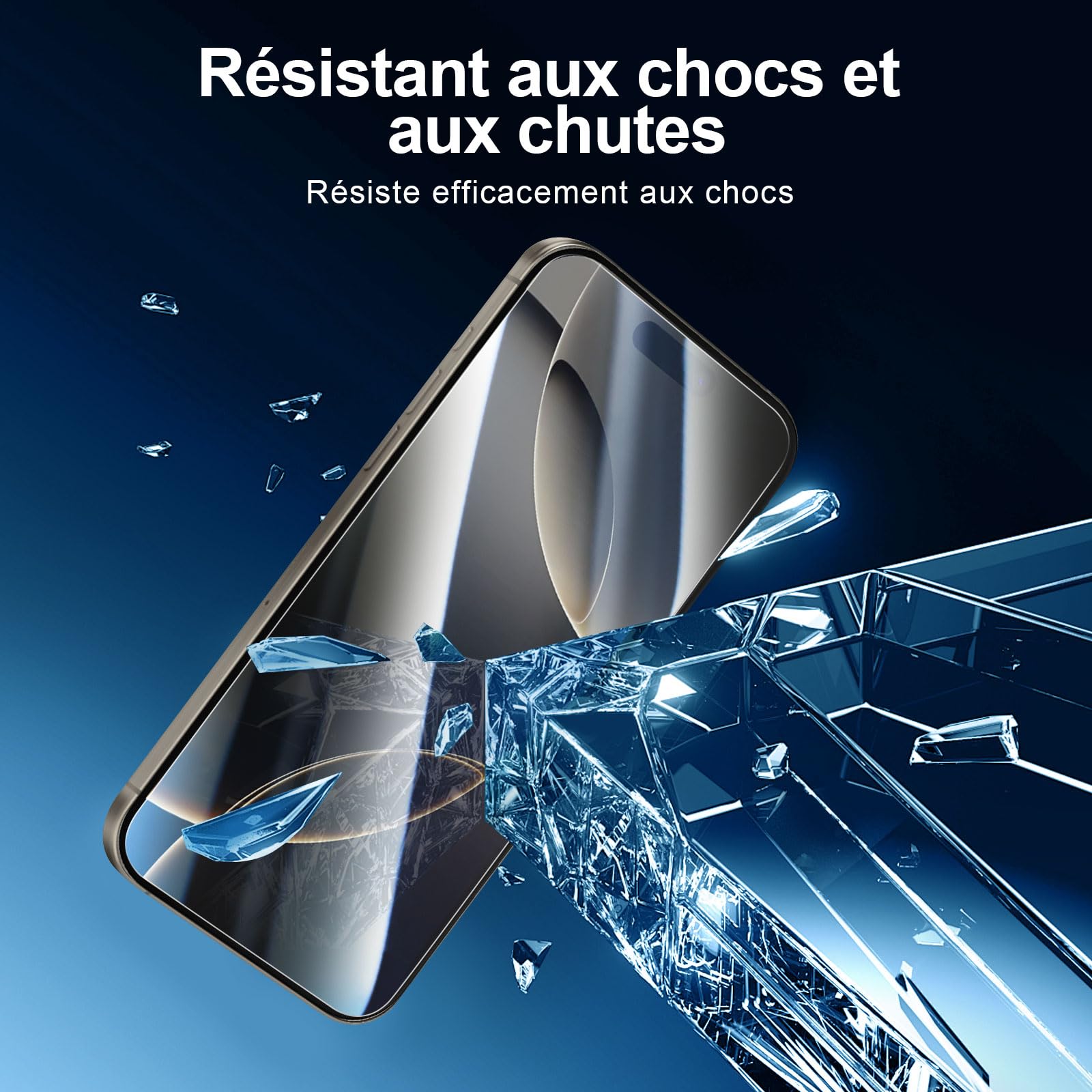 Protection d’écran en verre trempé pour iPhone 16 Pro, offrant une protection ultra-résistante et une installation facile.