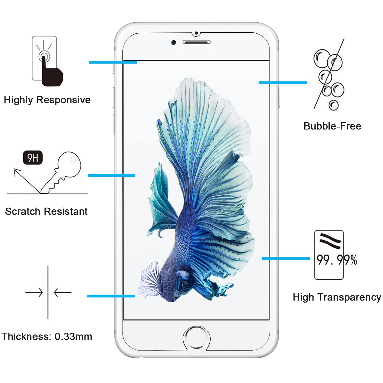 - 2 Pack Verre Trempé iPhone 6 Plus et iPhone 6s Plus,Très grande dureté: résiste aux égratignures jusqu’à 9H. Haute-réponse, haute transparence, et une grande transparence.
