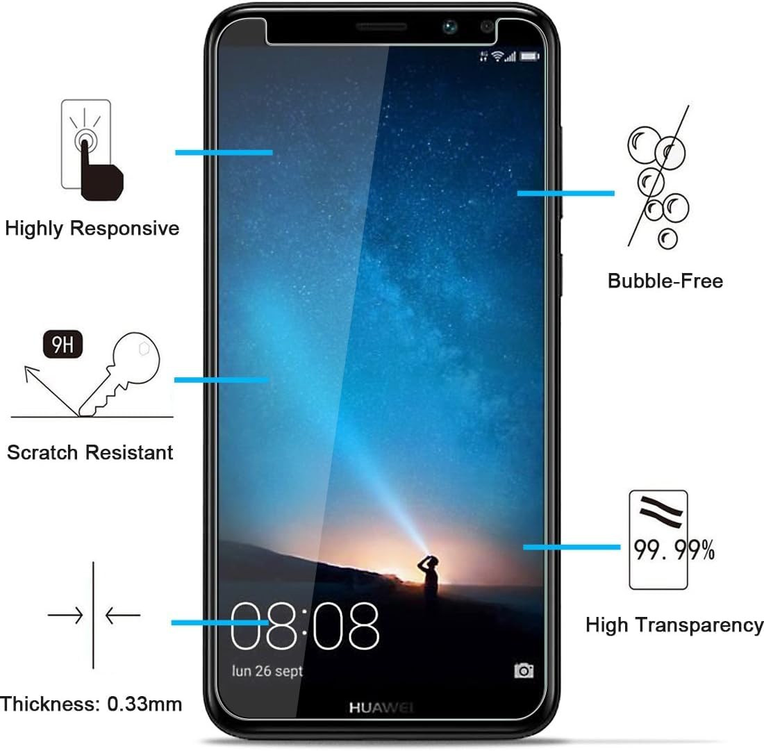 - Lot de 3 Verre Trempé Huawei Mate 10 Lite, Très grande dureté: résiste aux égratignures jusqu’à 9H . Haute-réponse et une grande transparence.