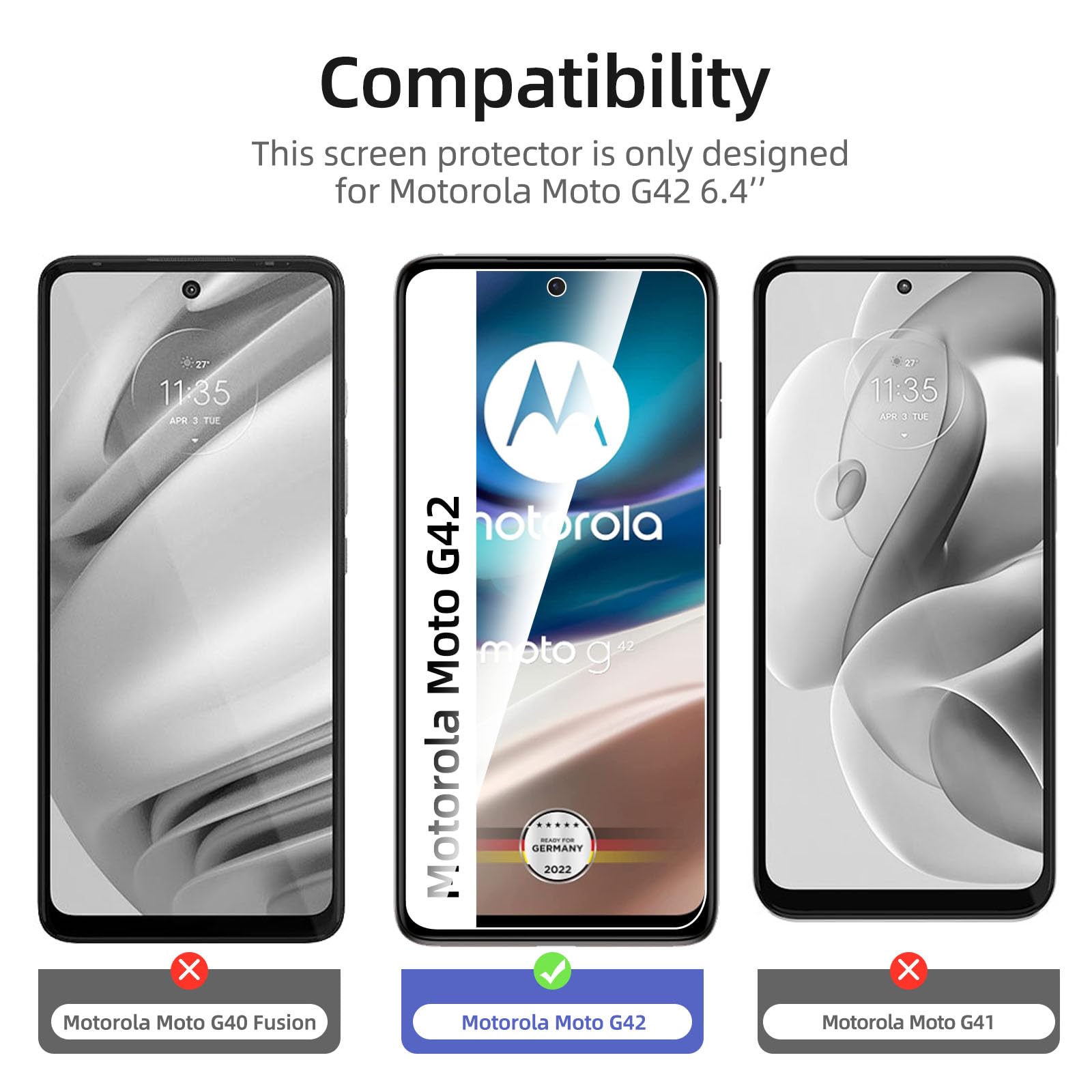 - Lot de 3 Verre Trempé Motorola Moto G42. Très grande dureté: résiste aux égratignures jusqu’à 9H. Haute-réponse et haute transparence.