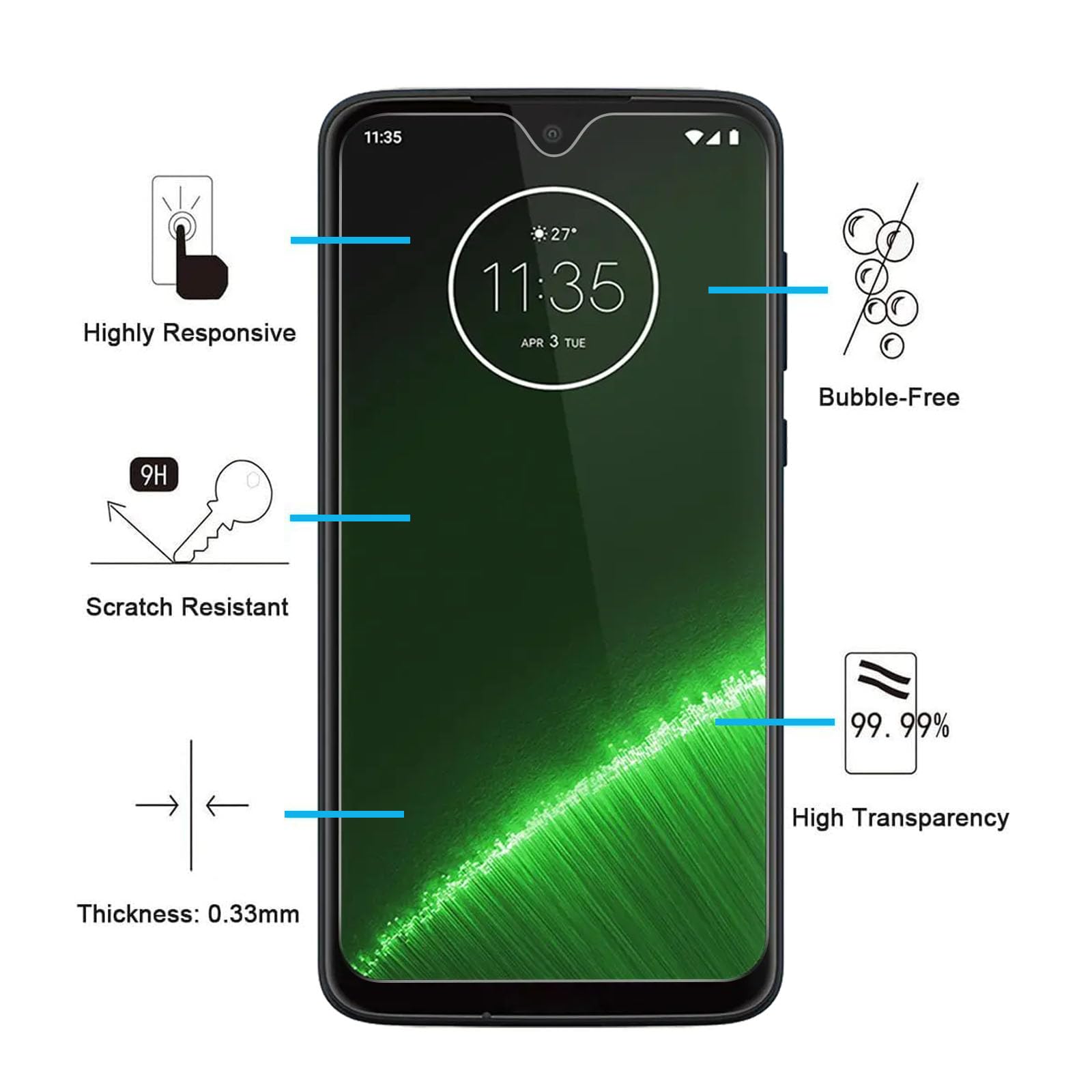 - Pack de 3 Verre Trempé Motorola Moto G7, très grande dureté: résiste aux égratignures jusqu’à 9H. Haute-réponse et une grande transparence. Sans poussière sans traces de doigts un bouton-poussoir trop facile l’installation sans bulle.