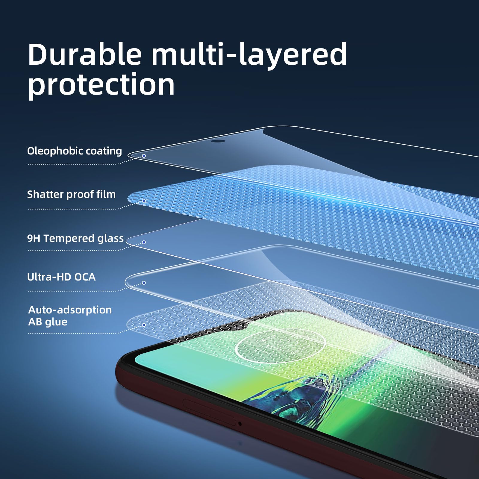 - Installation sans poussière, sans empreintes digitales, facile d’une simple pression, sans bulles.Oléophobe: il a un revêtement oléophobique qui empêche les empreintes digitales et d’autres contaminants et rend le film facile à nettoyer.