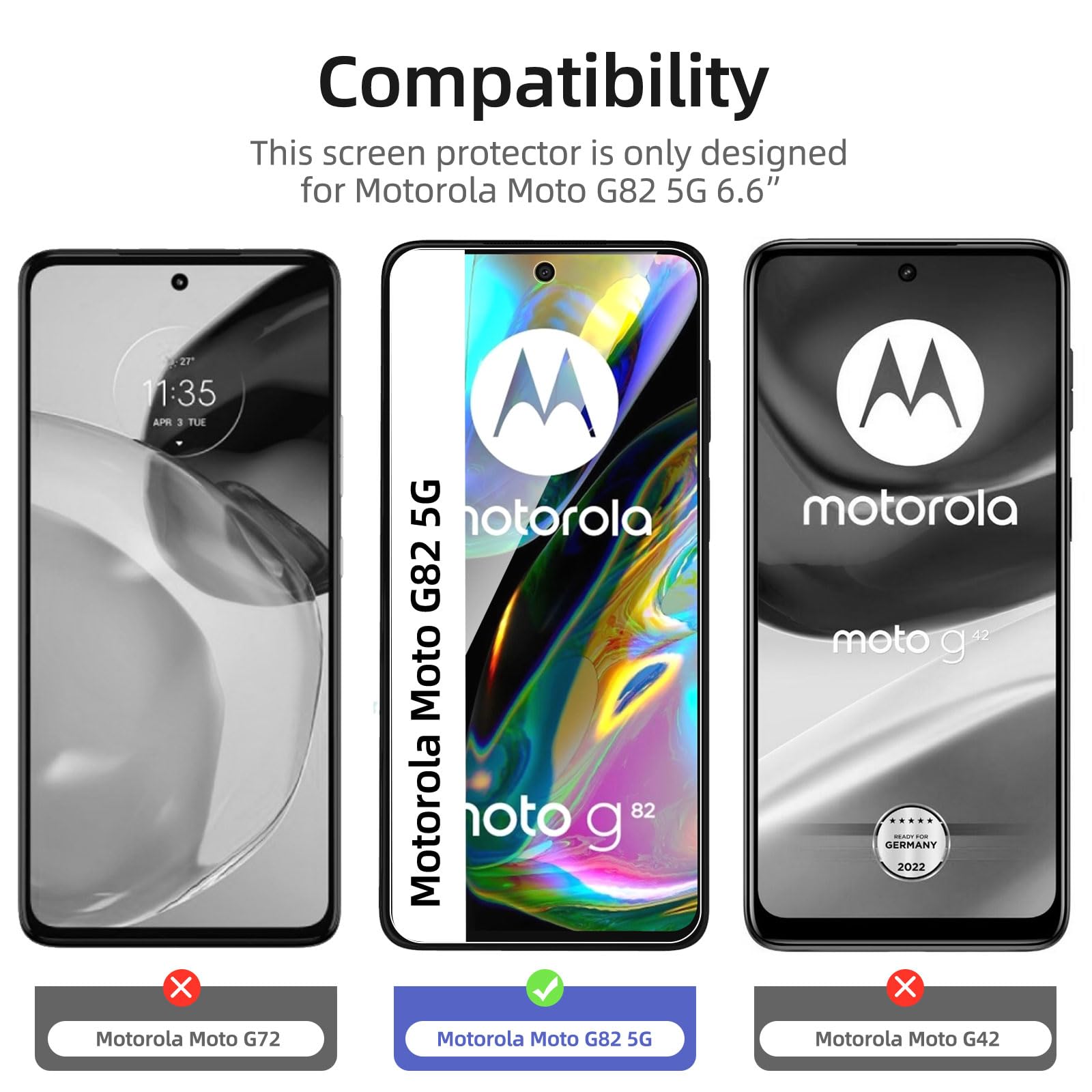 - Lot de 3 Verre Trempé Motorola Moto G82 5G. Très grande dureté: résiste aux égratignures jusqu’à 9H. Haute-réponse et haute transparence.