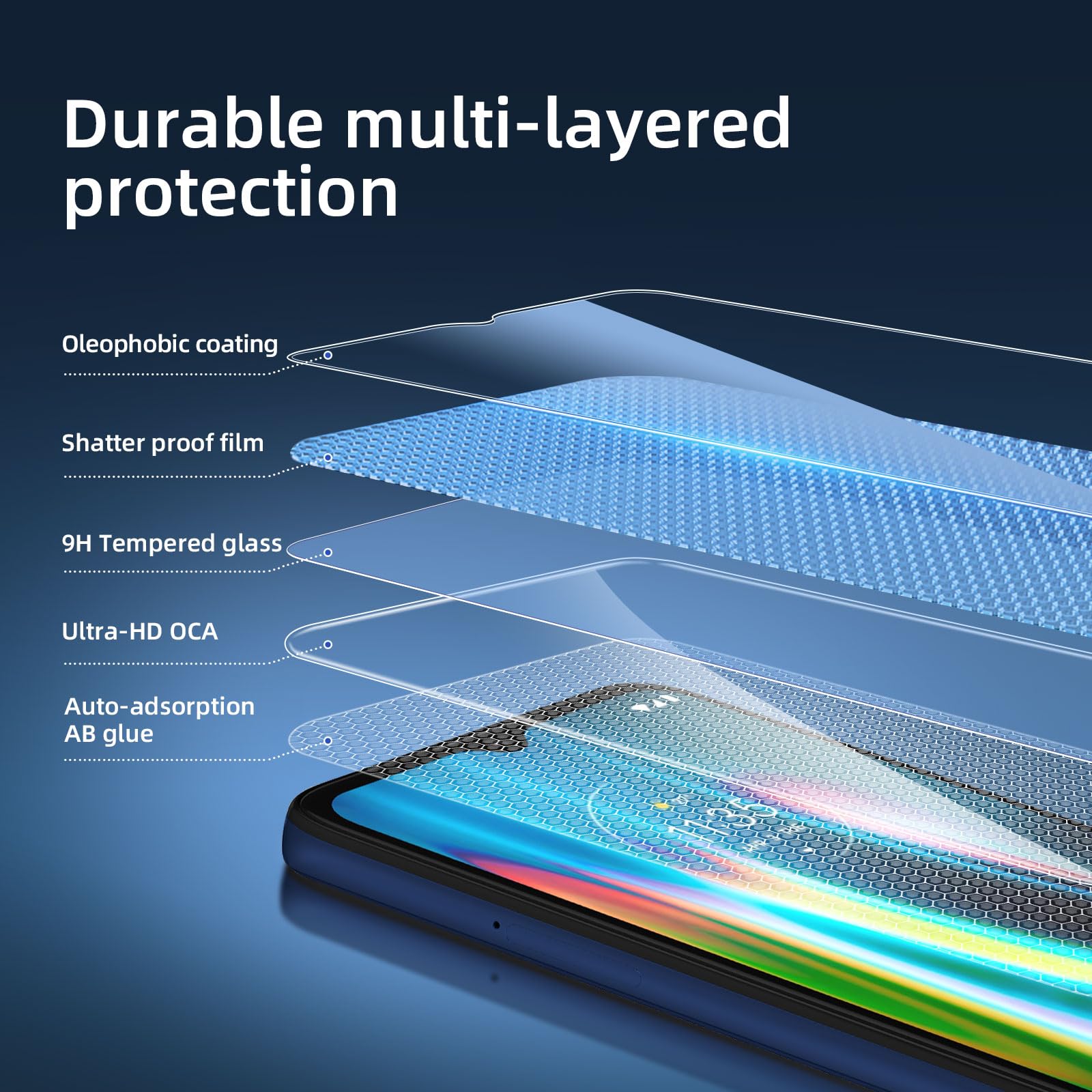 - Installation sans poussière, sans empreintes digitales, facile d’une simple pression, sans bulles.Oléophobe: il a un revêtement oléophobique qui empêche les empreintes digitales et d’autres contaminants et rend le film facile à nettoyer.