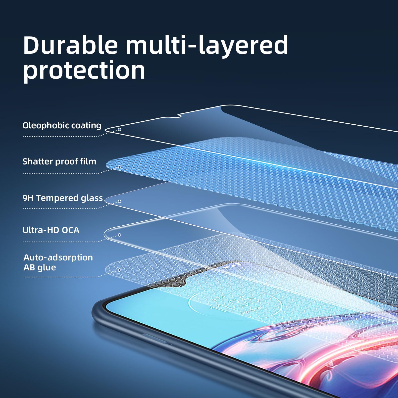 - Installation sans poussière, sans empreintes digitales, facile d’une simple pression, sans bulles.Oléophobe: il a un revêtement oléophobique qui empêche les empreintes digitales et d’autres contaminants et rend le film facile à nettoyer.