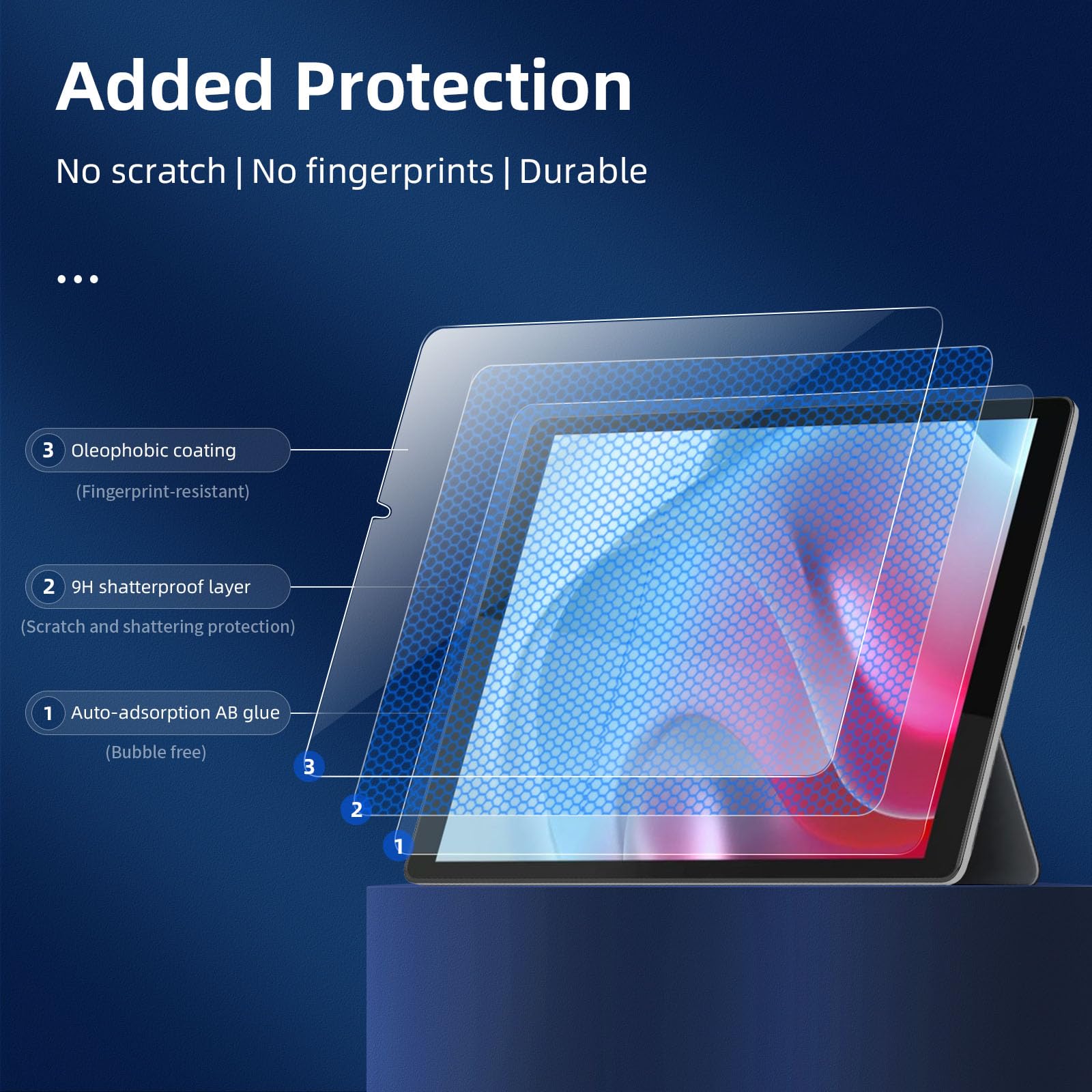 - Installation sans poussière, sans empreintes digitales, facile d’une simple pression, sans bulles.Oléophobe: il a un revêtement oléophobique qui empêche les empreintes digitales et d’autres contaminants et rend le film facile à nettoyer.