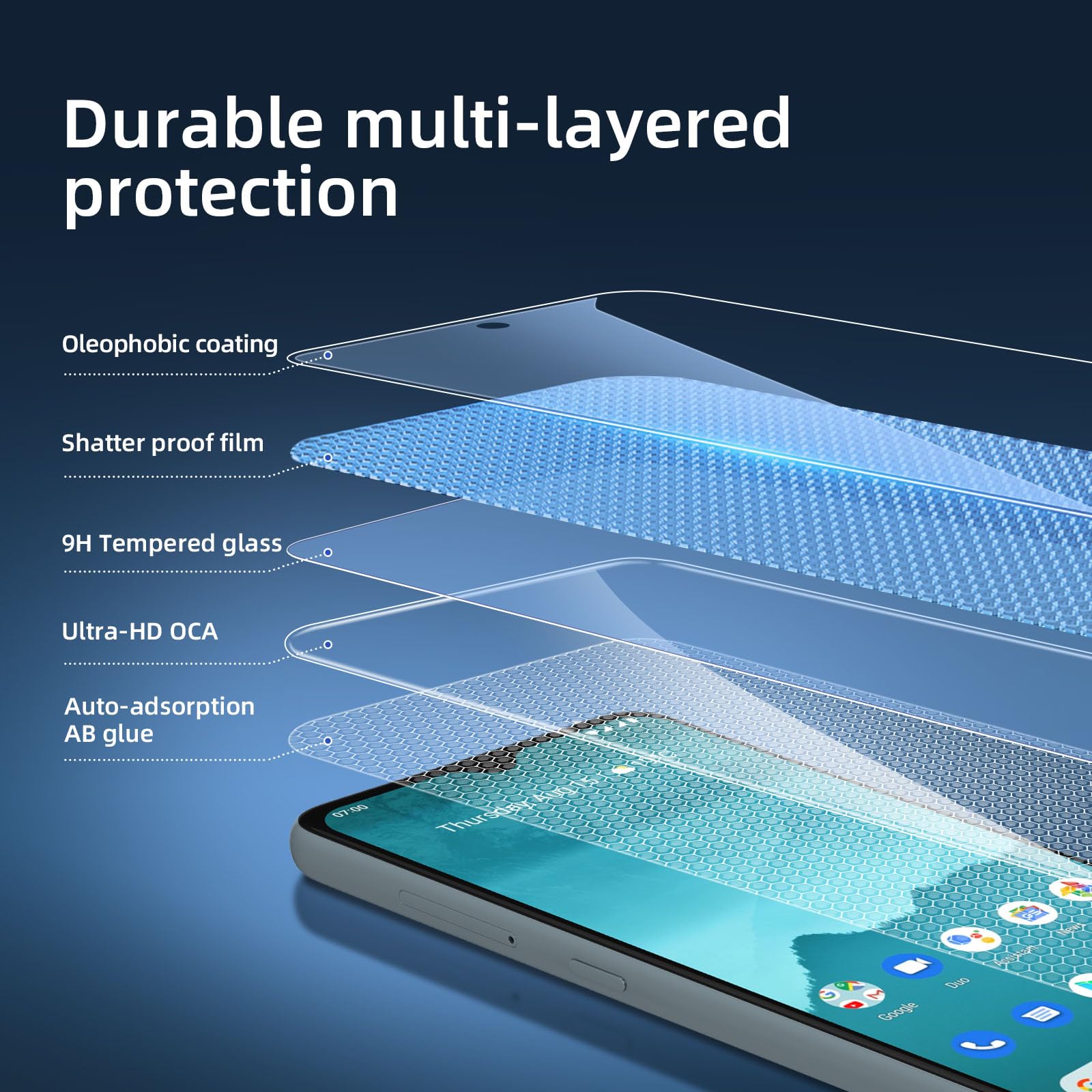 La transparence HD ultra claire de ces protections d’écran permet de conserver la qualité d’affichage originale de votre Nokia 6.2 et Nokia 7.2, tout en offrant une expérience visuelle optimale. De plus, leur finition brillante et leur revêtement oléophobique empêchent les empreintes digitales et autres contaminants de s’accumuler, facilitant ainsi le nettoyage et le maintien d’un écran impeccable.