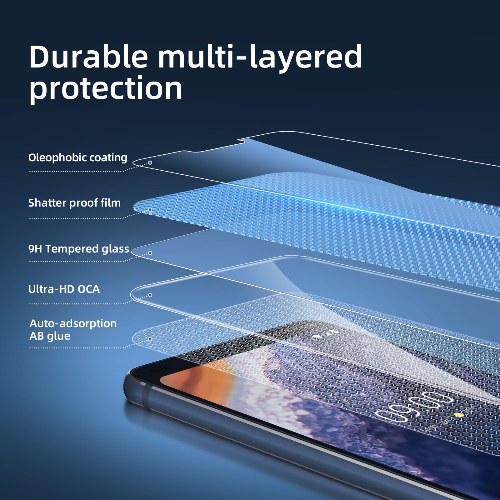 - Installation sans poussière, sans empreintes digitales, facile d’une simple pression, sans bulles.Oléophobe: il a un revêtement oléophobique qui empêche les empreintes digitales et d’autres contaminants et rend le film facile à nettoyer.