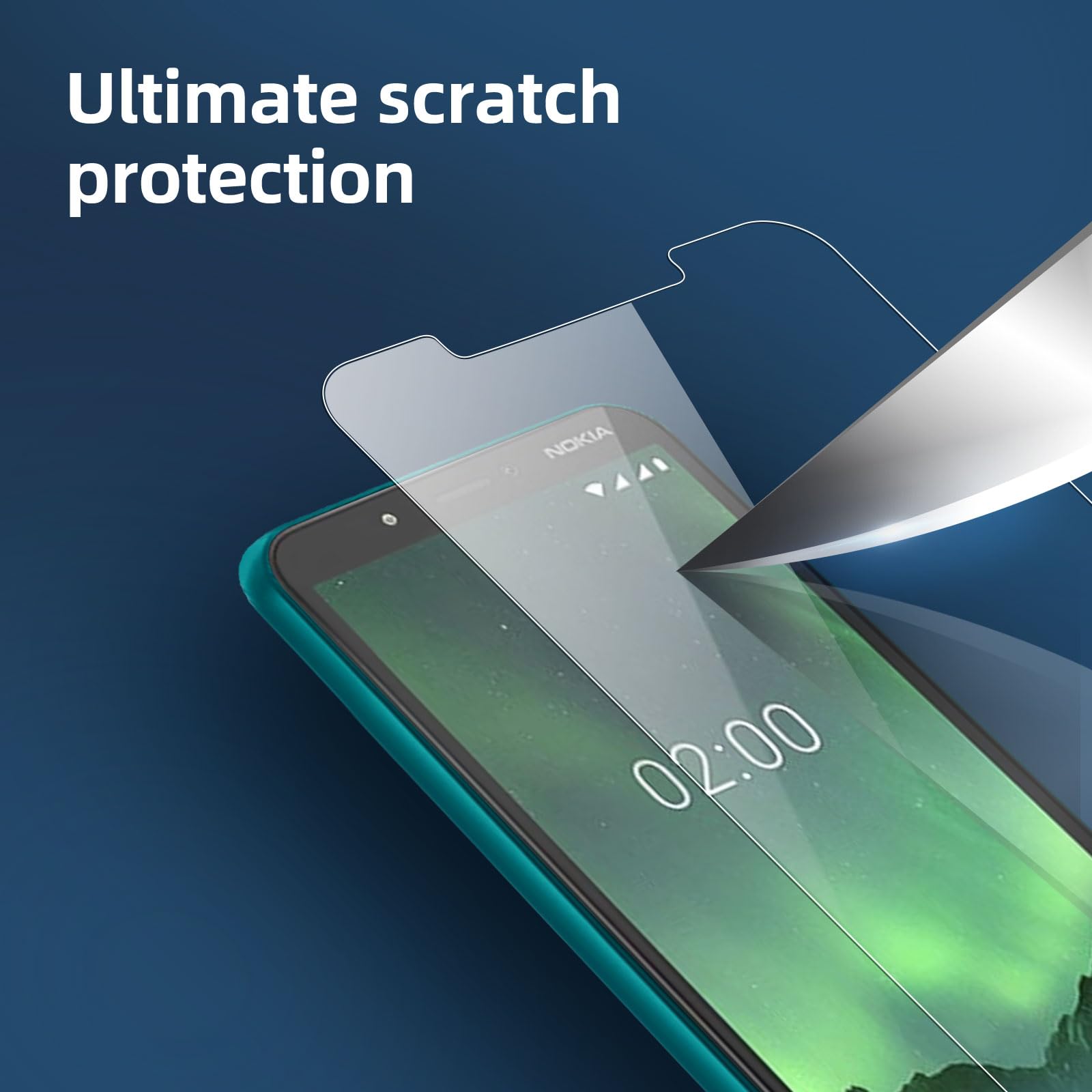 Lot de 3 protections d’écran en verre trempé pour Nokia C2, offrant une dureté de 9H et une transparence HD ultra claire.