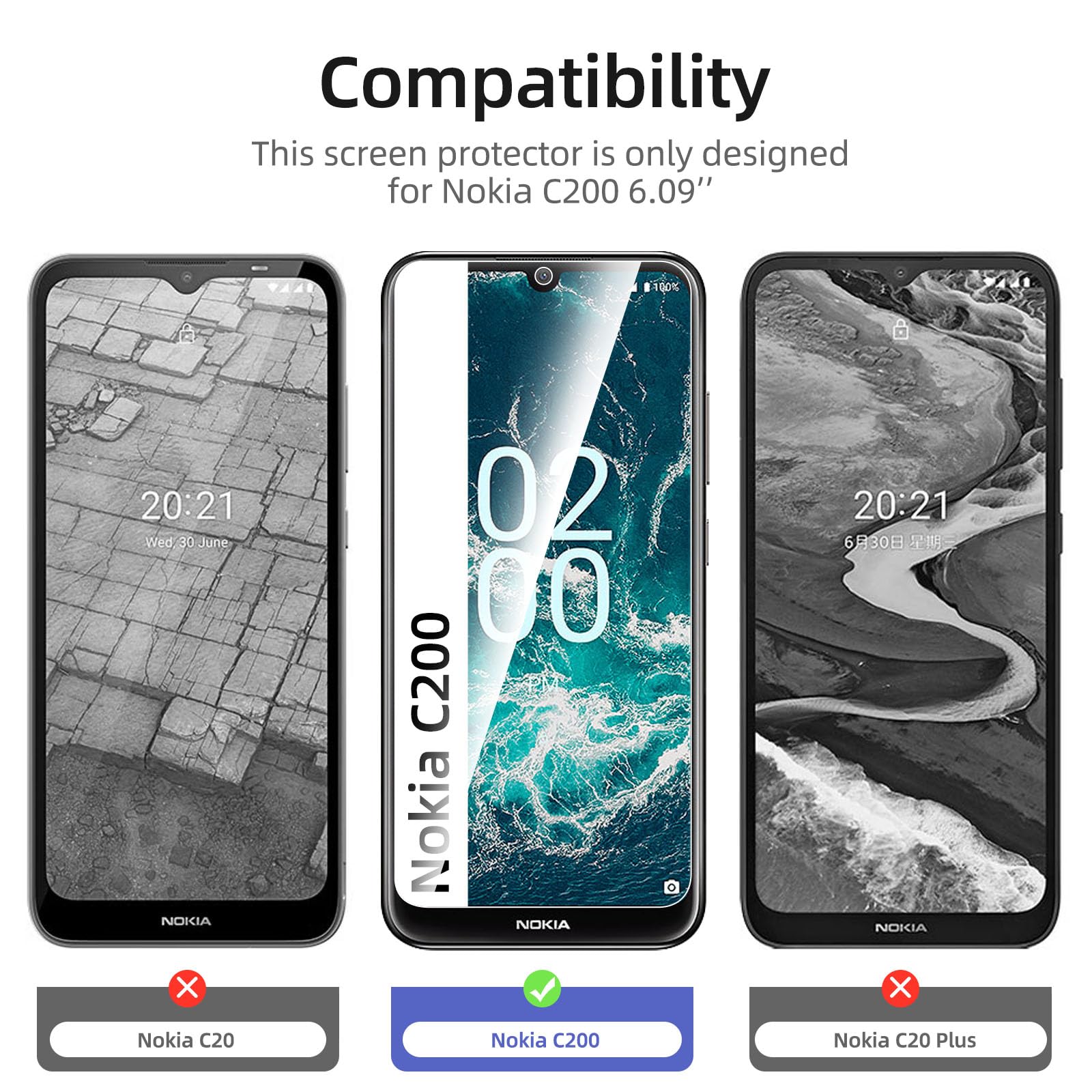 - Lot de 3 Verre Trempé Nokia C200. Très grande dureté: résiste aux égratignures jusqu’à 9H. Haute-réponse et haute transparence.