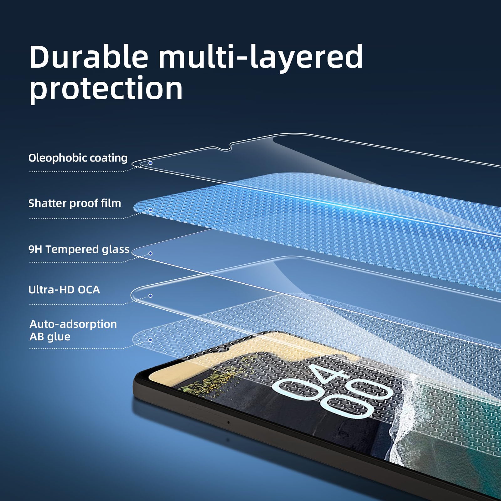 - Installation sans poussière, sans empreintes digitales, facile d’une simple pression, sans bulles.Oléophobe: il a un revêtement oléophobique qui empêche les empreintes digitales et d’autres contaminants et rend le film facile à nettoyer.