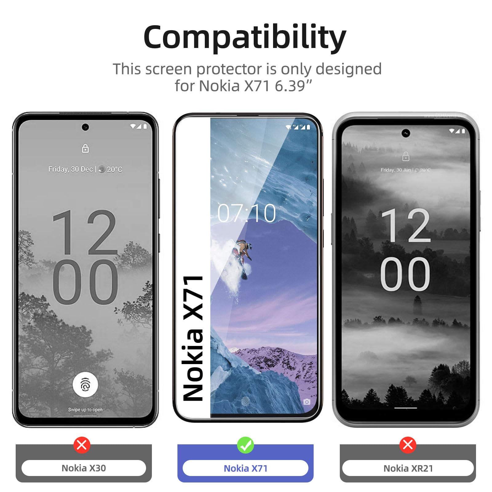 - Lot de 3 Verre Trempé Nokia X71. Très grande dureté: résiste aux égratignures jusqu’à 9H. Haute-réponse et haute transparence.