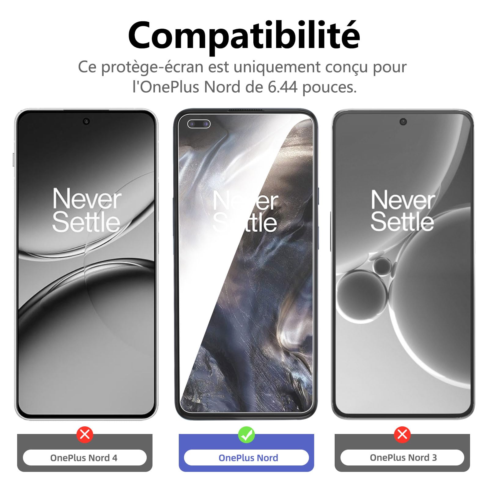 - Lot de 3 Verre Trempé OnePlus Nord. Très grande dureté: résiste aux égratignures jusqu’à 9H. Haute-réponse et haute transparence.