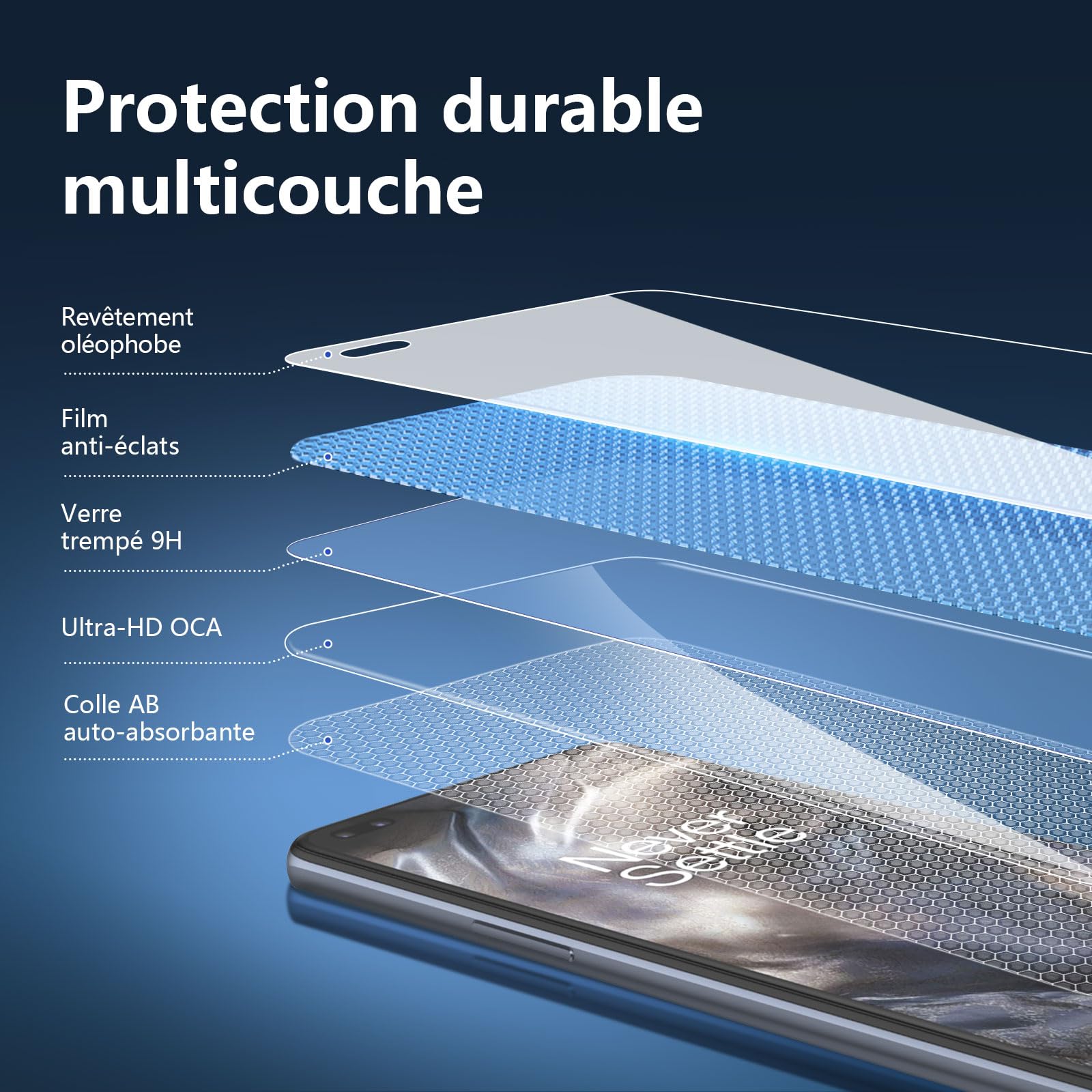 L’installation est un jeu d’enfant grâce à son adhésif en silicium solide qui assure une application sans bulles et sans poussière. De plus, le revêtement oléophobique empêche les empreintes digitales et autres contaminants, rendant le nettoyage de votre écran aussi simple qu’un coup de chiffon.