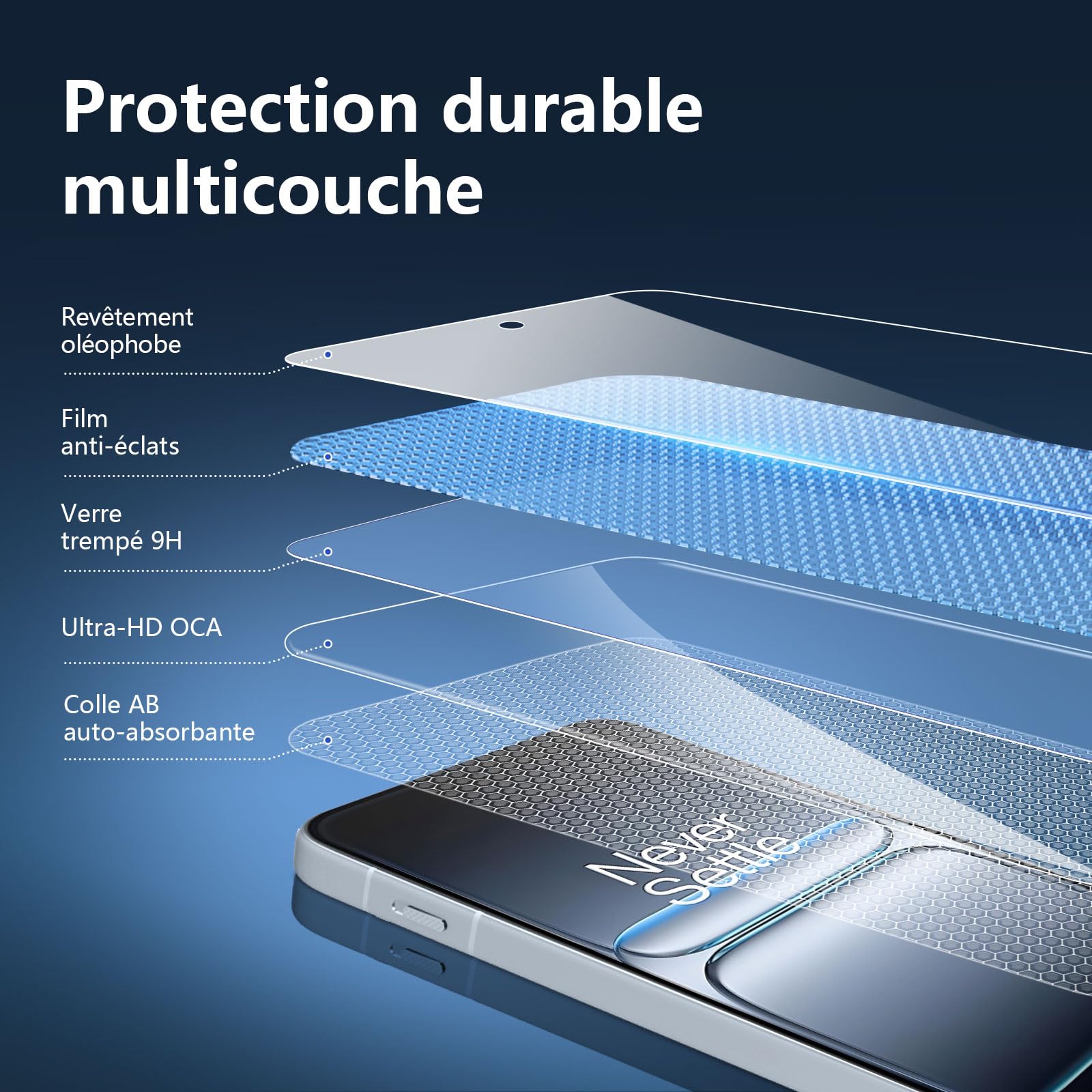 L’installation est un jeu d’enfant grâce à sa conception sans bulles et sans poussière. Le revêtement oléophobe empêche les empreintes digitales et autres contaminants de s’accumuler, rendant le nettoyage de l’écran aussi simple que rapide. De plus, le verre est doté de bords arrondis pour une prise en main confortable et une intégration parfaite avec le design de votre téléphone.