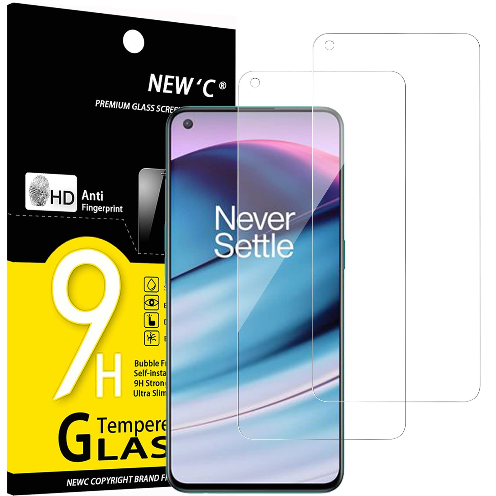NEW’C Lot de 2, Verre Trempé pour OnePlus Nord CE 5G, Film Protection écran efficace contre les Rayures – sans Bulles – Ultra Résistant (0,33mm HD Ultra Transparent) Dureté 9H Glass