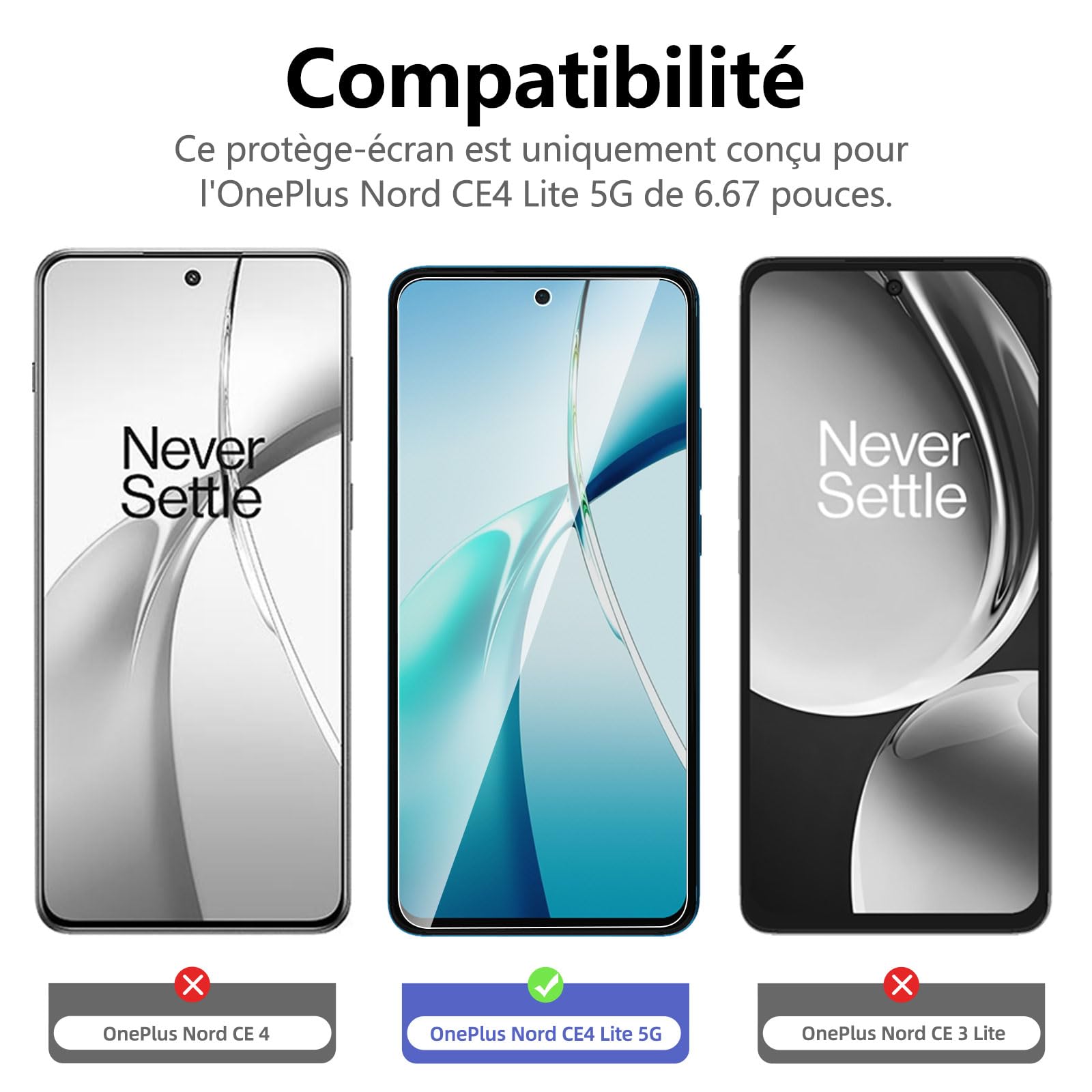 - Protection d’écran en Verre Trempé OnePlus Nord CE4 Lite 5G. NEW’C Touche délicate: il est revêtu sur le dos avec un adhésif de silicium solide qui rend l’installation facile et attache le film fermement afin de ne pas influer sur la sensibilité de l’écran tactile.