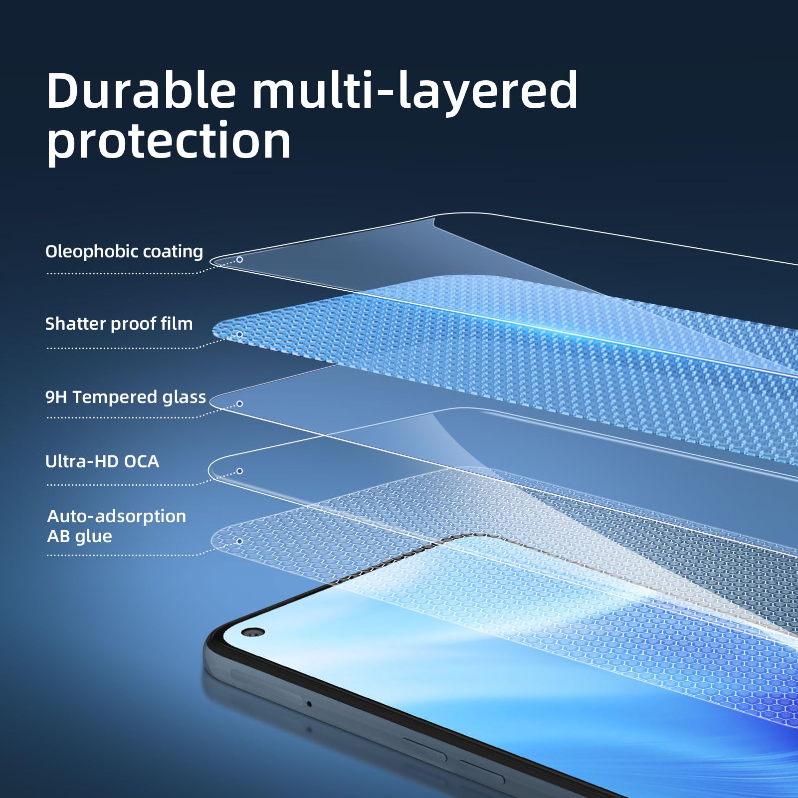 - Installation sans poussière, sans empreintes digitales, facile d’une simple pression, sans bulles.Oléophobe: il a un revêtement oléophobique qui empêche les empreintes digitales et d’autres contaminants et rend le film facile à nettoyer.