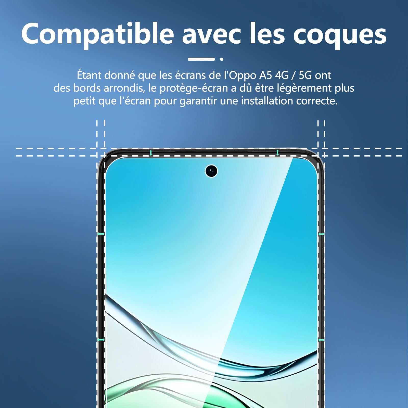 Protection d’écran en verre trempé pour OPPO A5 5G/4G, offrant une protection ultra-résistante contre les rayures et les chocs avec une dureté de 9H.