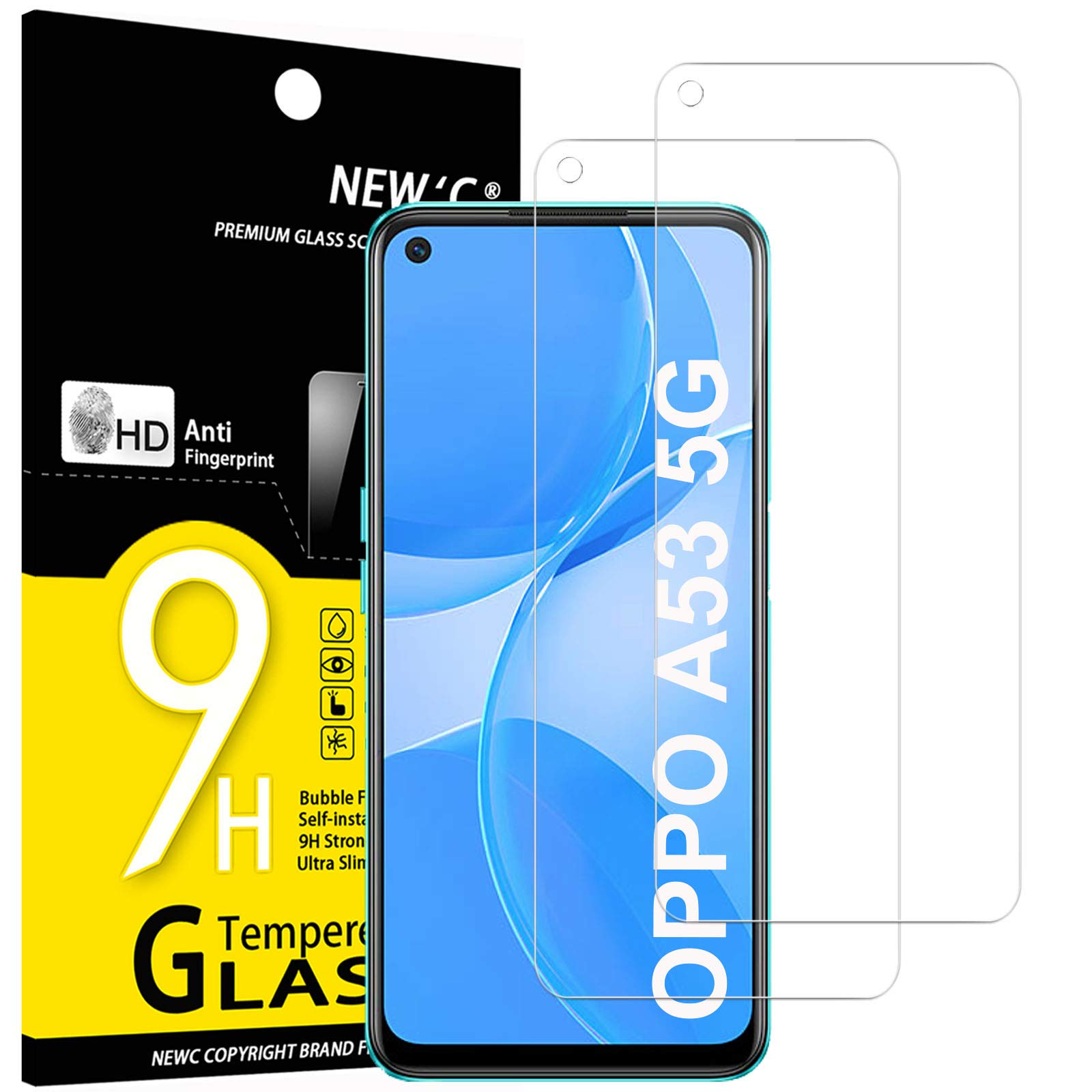 NEW’C Lot de 2, Verre Trempé pour Oppo A53 5G, Film Protection écran efficace contre les Rayures – sans Bulles – Ultra Résistant (0,33mm HD Ultra Transparent) Dureté 9H Glass