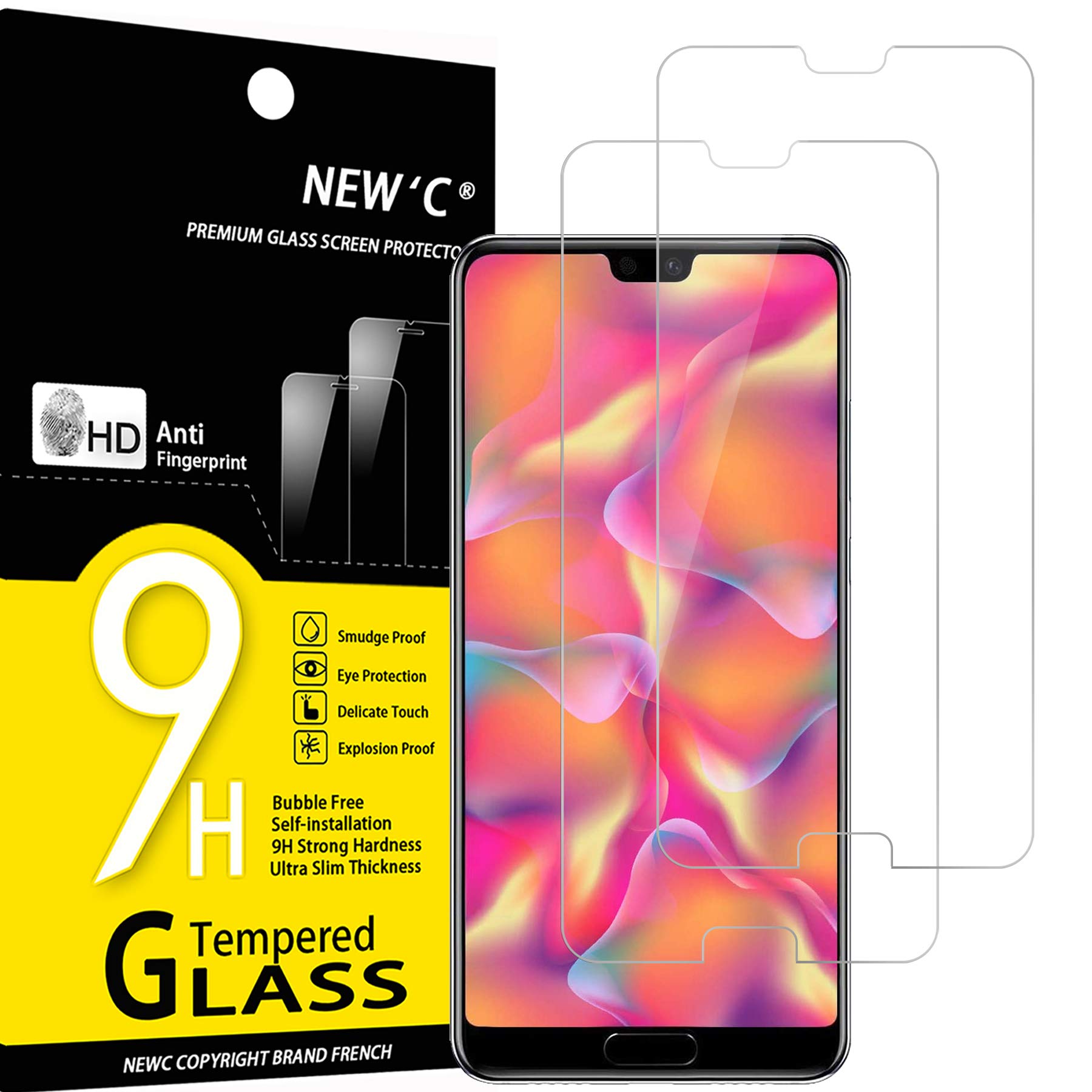 NEW’C Lot de 2, Verre Trempé pour Huawei P20, Film Protection écran sans Bulles d’air Ultra Résistant (0,33mm HD Ultra Transparent) Dureté 9H Glass