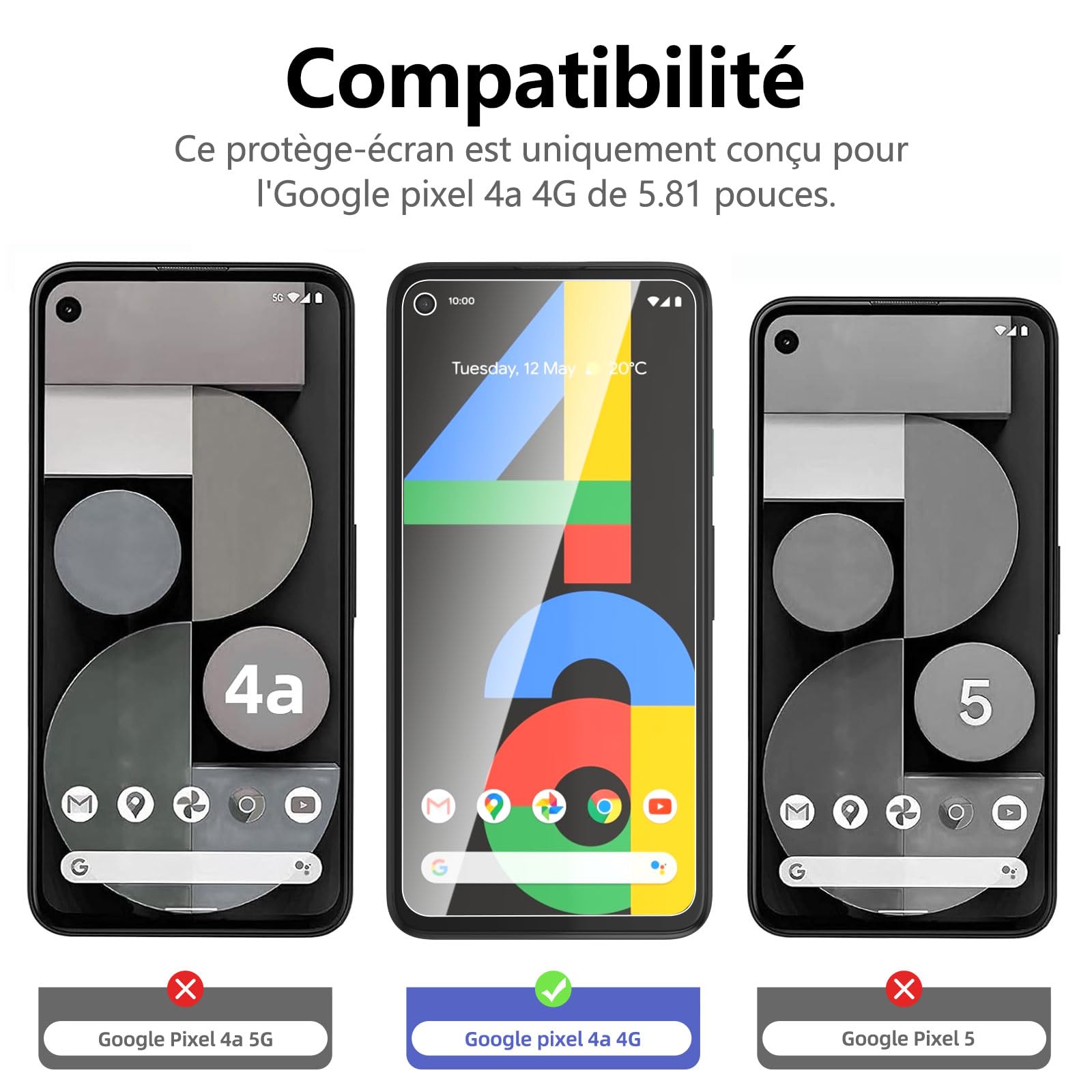 - NEW’C Protection d’écran en Verre Trempé Google pixel 4a 4G. Sensibilité tactile conservée : un revêtement adhésif de silicium qui rend l’installation facile et durable tout en préservant les qualités tactiles du téléphone. Installation sans poussière, sans empreintes digitales, facile d’une simple pression, sans bulles.