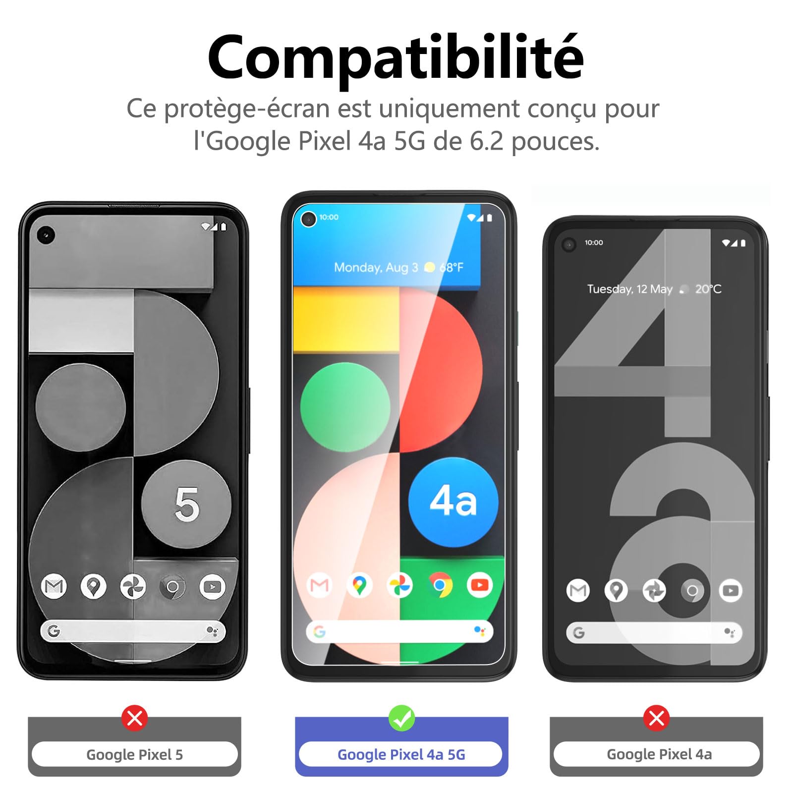 - ATTENTION: NON Compatible avec Google Pixel 4a 4G
