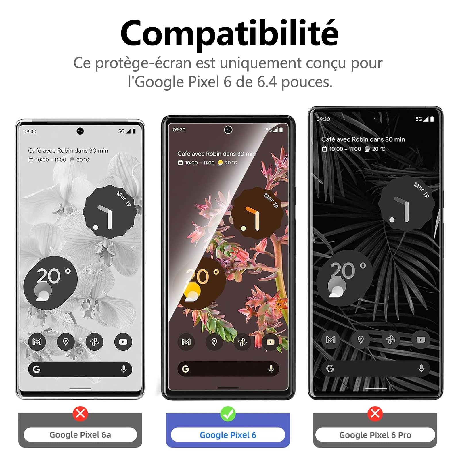 - Lot de 3 Verre Trempé Google Pixel 6. Très grande dureté: résiste aux égratignures jusqu’à 9H. Haute-réponse et haute transparence.