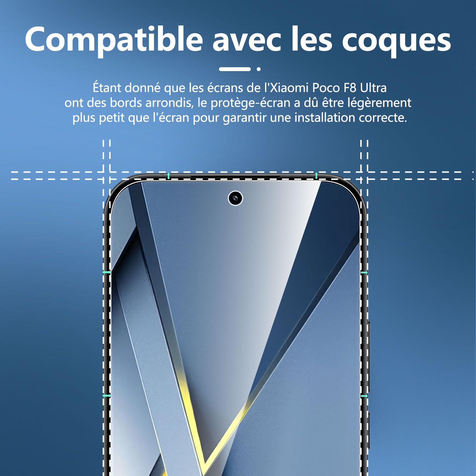 - NEW’C Protection d’écran en Verre Trempé Xiaomi POCO F8 Ultra, Xiaomi Redmi K90 Pro Max (6,9 Pouces). Touche délicate: il est revêtu sur le dos avec un adhésif de silicium solide qui rend l’installation facile et attache le film fermement afin de ne pas influer sur la sensibilité de l’écran tactile.