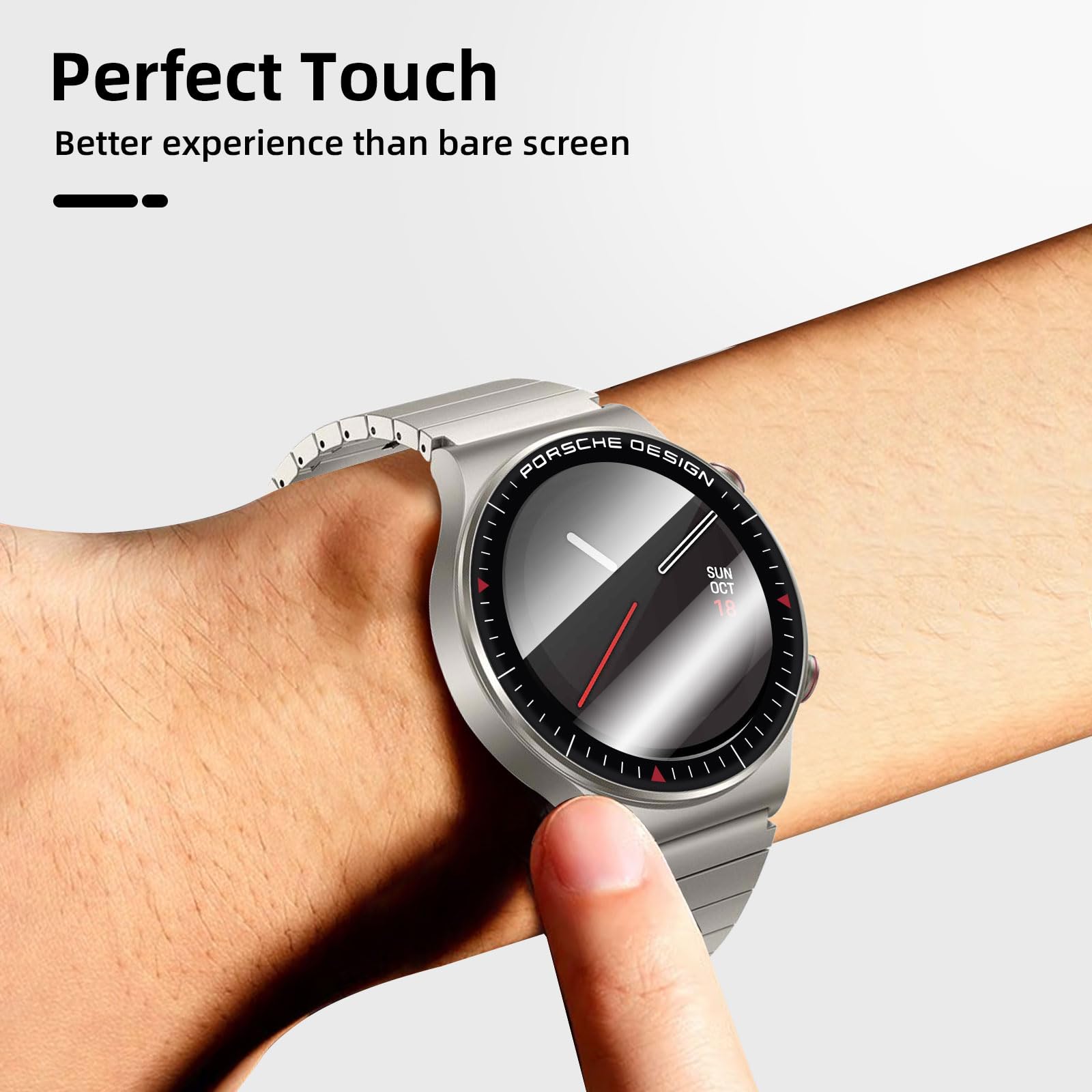 Le verre trempé est doté d’un revêtement oléophobique qui empêche les empreintes digitales et autres contaminants, facilitant ainsi le nettoyage de votre écran. L’installation est un jeu d’enfant grâce à l’adhésif en silicium solide qui assure une fixation ferme sans bulles d’air. De plus, la finition transparente et brillante de la protection permet de conserver l’esthétique originale de votre montre.