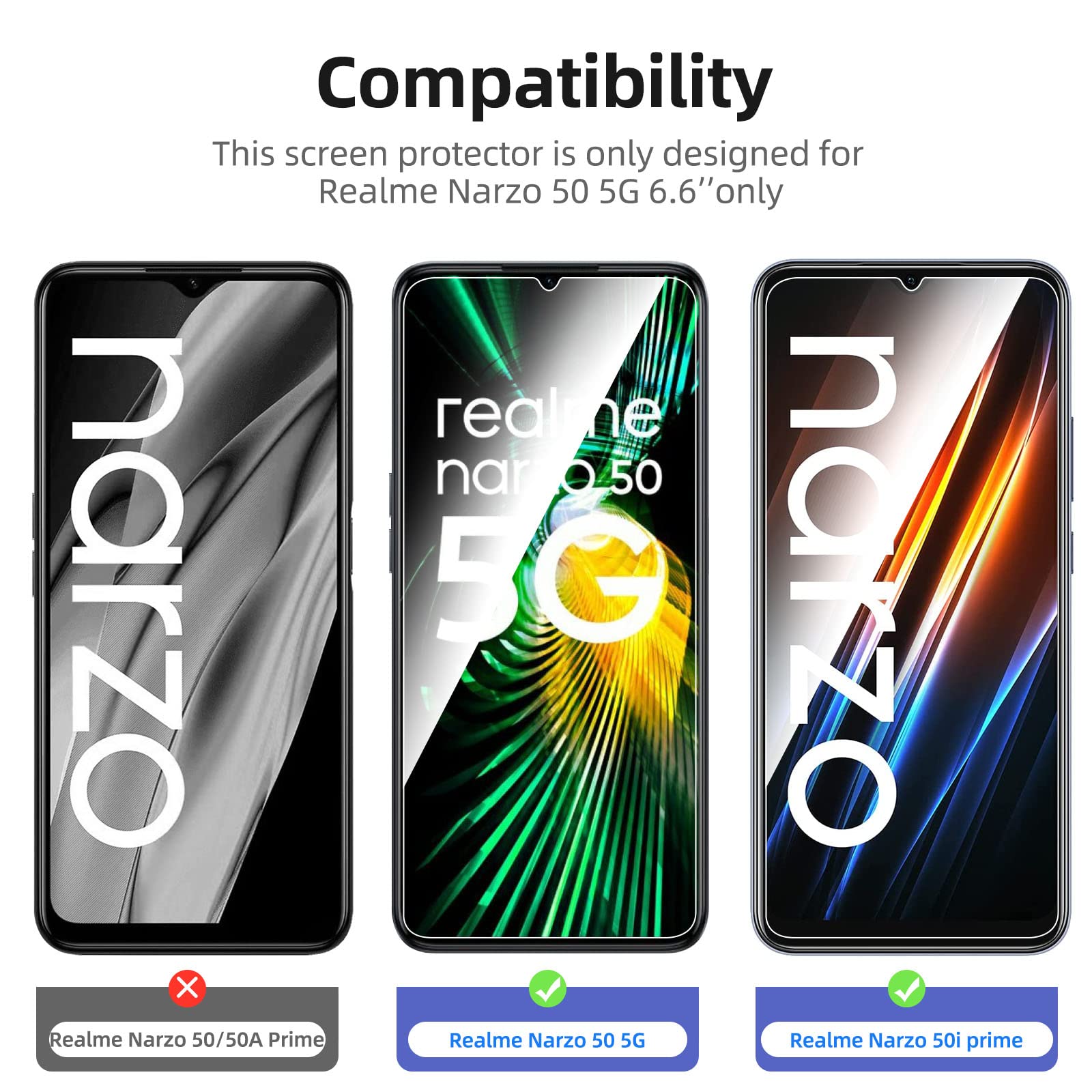- Lot de 3 Verre Trempé Realme Narzo 50 5G,Realme Narzo 50i prime. Très grande dureté: résiste aux égratignures jusqu’à 9H. Haute-réponse et haute transparence.