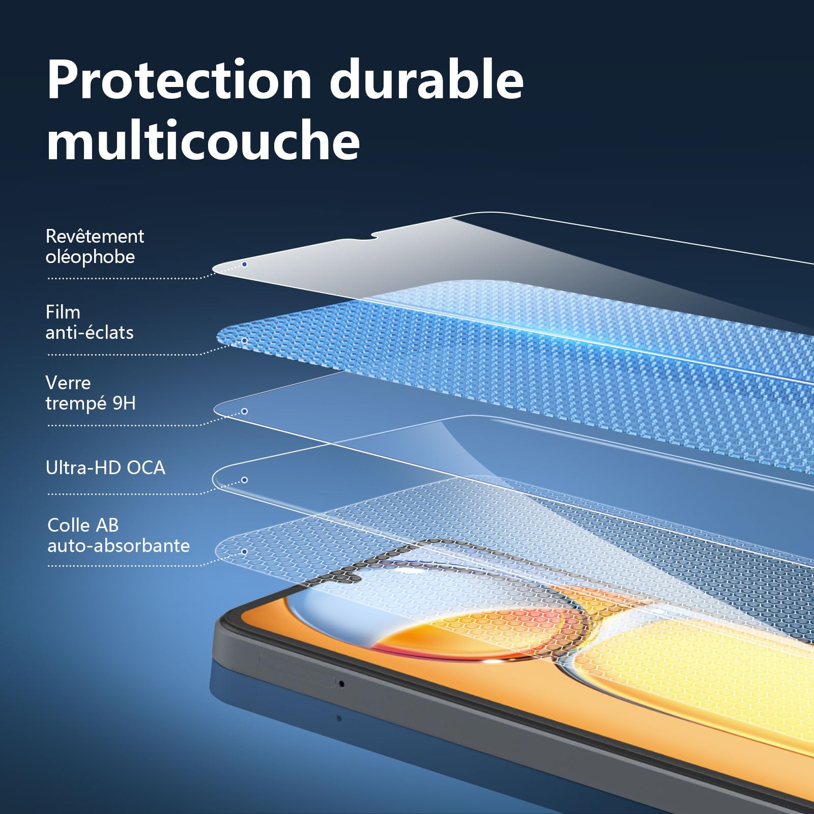 - Oléophobe: un revêtement qui empêche les empreintes digitales et d’autres contaminants et rend le verre très facile à nettoyer. Installation sans poussière, sans empreintes digitales, facile d’une simple pression, sans bulles.