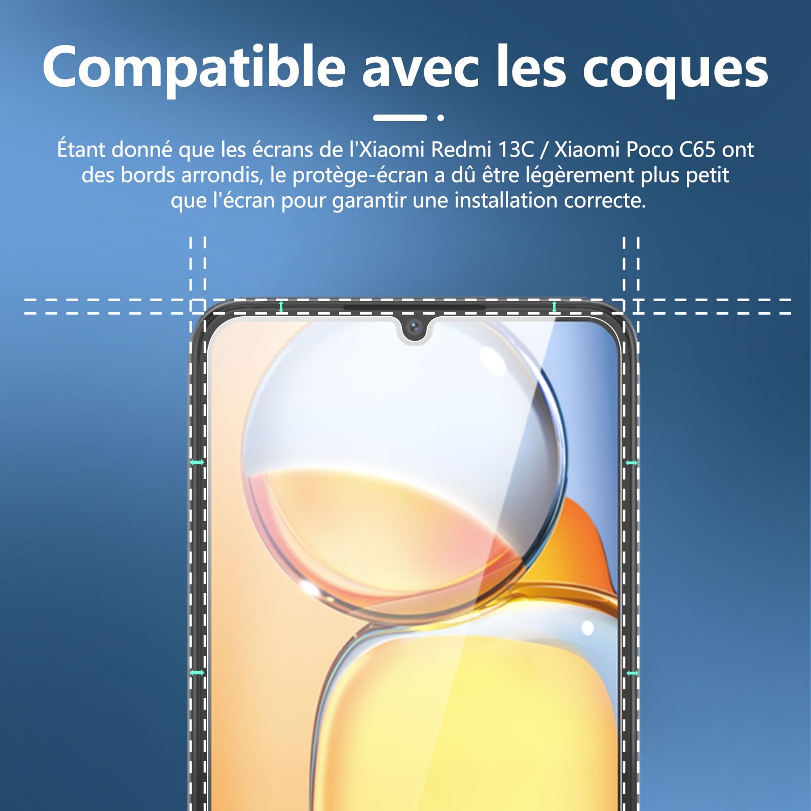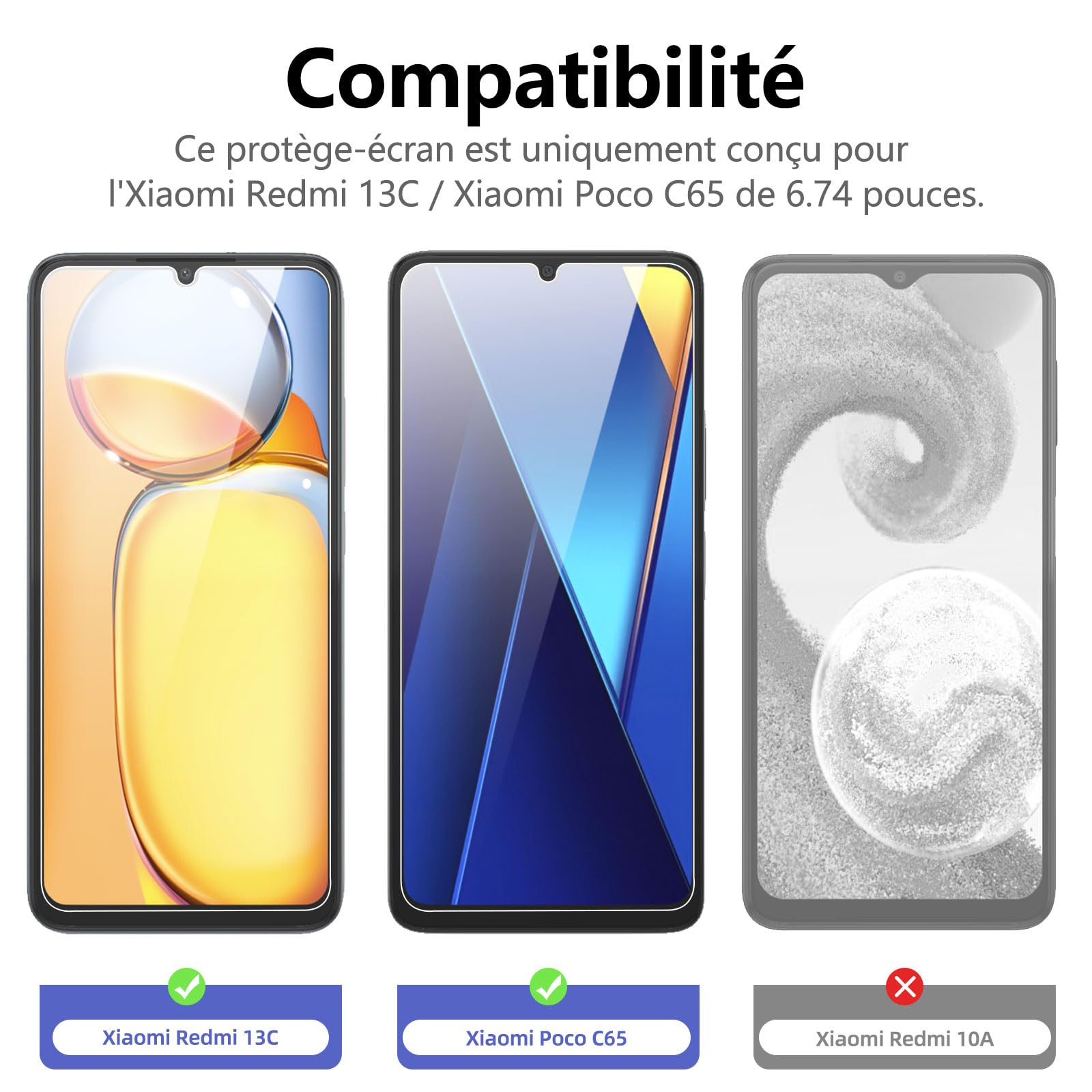 - Protection d’écran en Verre Trempé Xiaomi Redmi 13C 5G/4G, Xiaomi Poco C65. NEW’C Touche délicate: il est revêtu sur le dos avec un adhésif de silicium solide qui rend l’installation facile et attache le film fermement afin de ne pas influer sur la sensibilité de l’écran tactile.