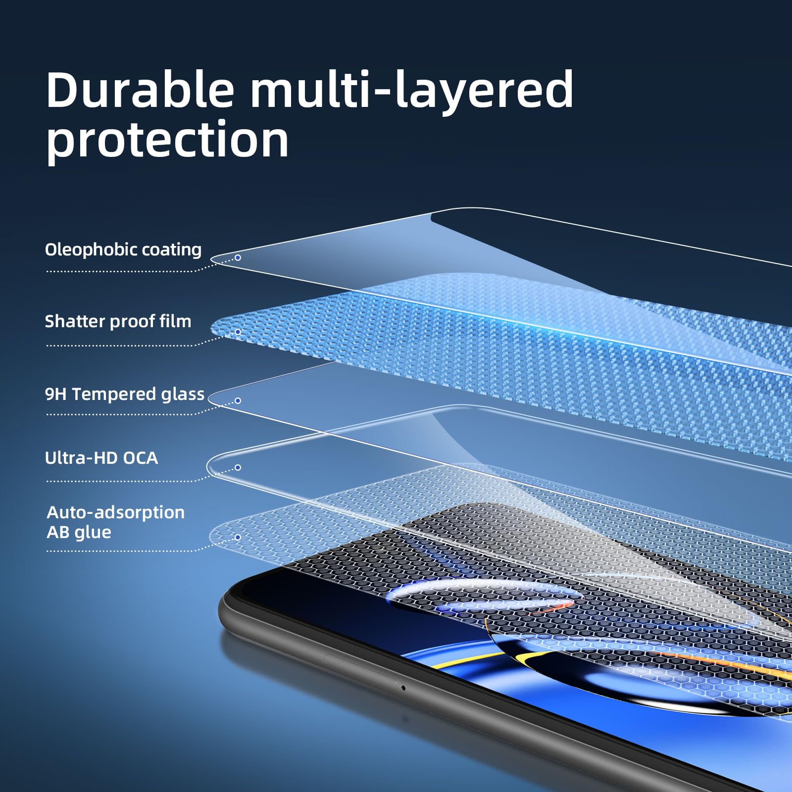 - Installation sans poussière, sans empreintes digitales, facile d’une simple pression, sans bulles.Oléophobe: il a un revêtement oléophobique qui empêche les empreintes digitales et d’autres contaminants et rend le film facile à nettoyer.