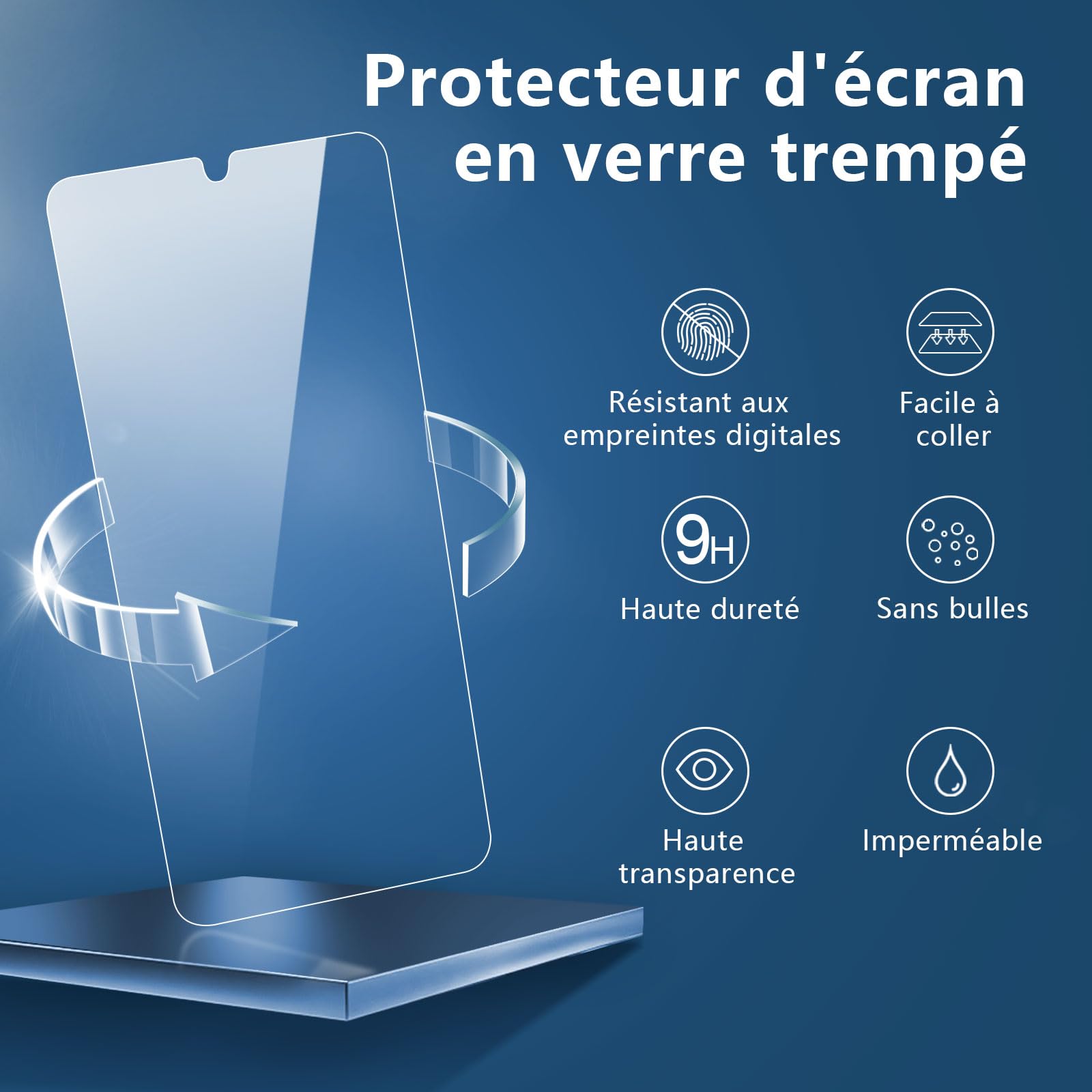 - Fabriqué à partir de verre trempé premium haute qualité, 0,33 mm épaisseur et des bords arrondis. Solution de protection idéale : Extrêmement dure, protège l’écran du téléphone des chocs et des dégâts. Oléophobe: il a un revêtement oléophobique qui empêche les empreintes digitales et d’autres contaminants et rend le film facile à nettoyer.