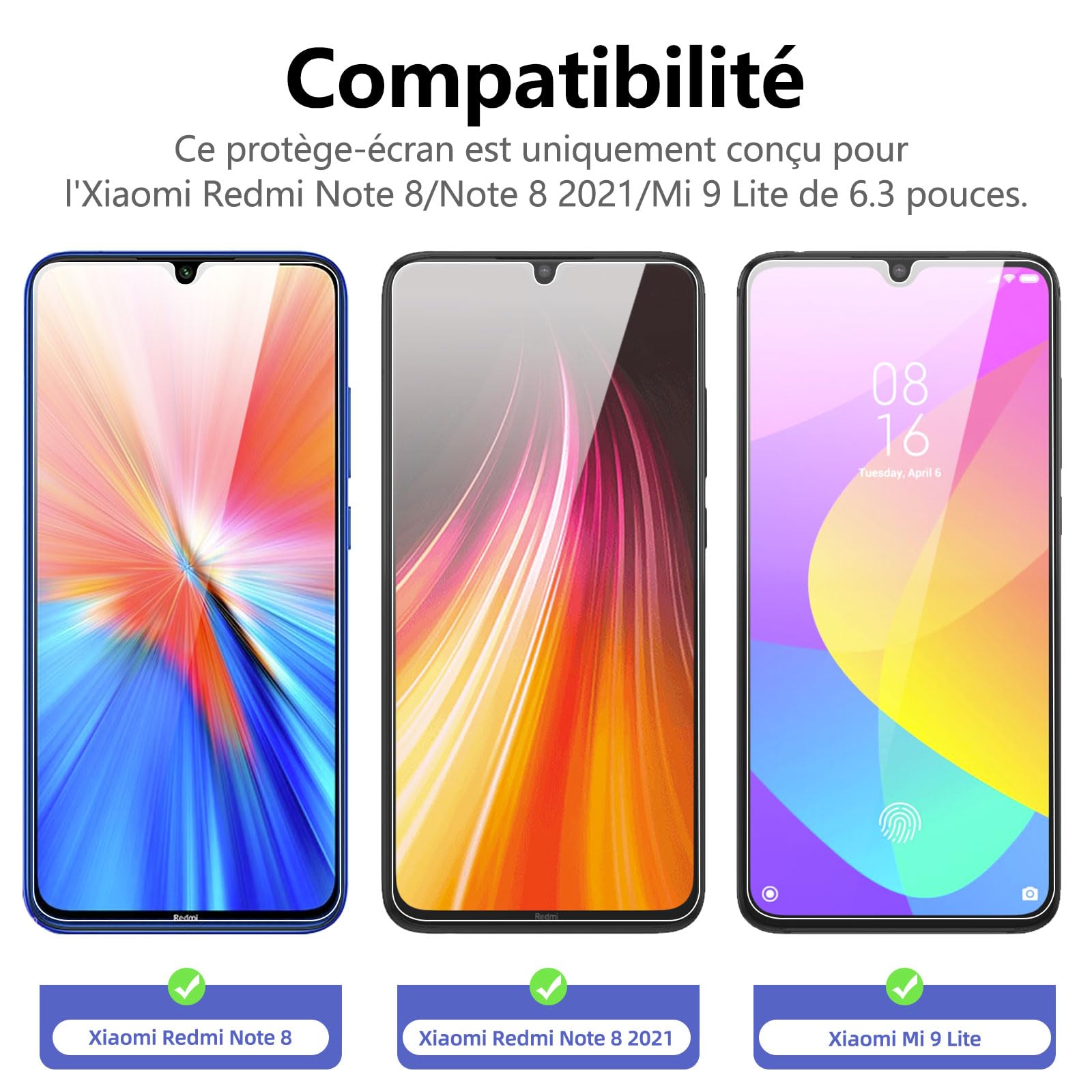 - Lot de 3 Verre Trempé Xiaomi Redmi Note 8, Note 8 2021, Xiaomi Mi 9 Lite. Très grande dureté: résiste aux égratignures jusqu’à 9H. Haute-réponse et haute transparence.