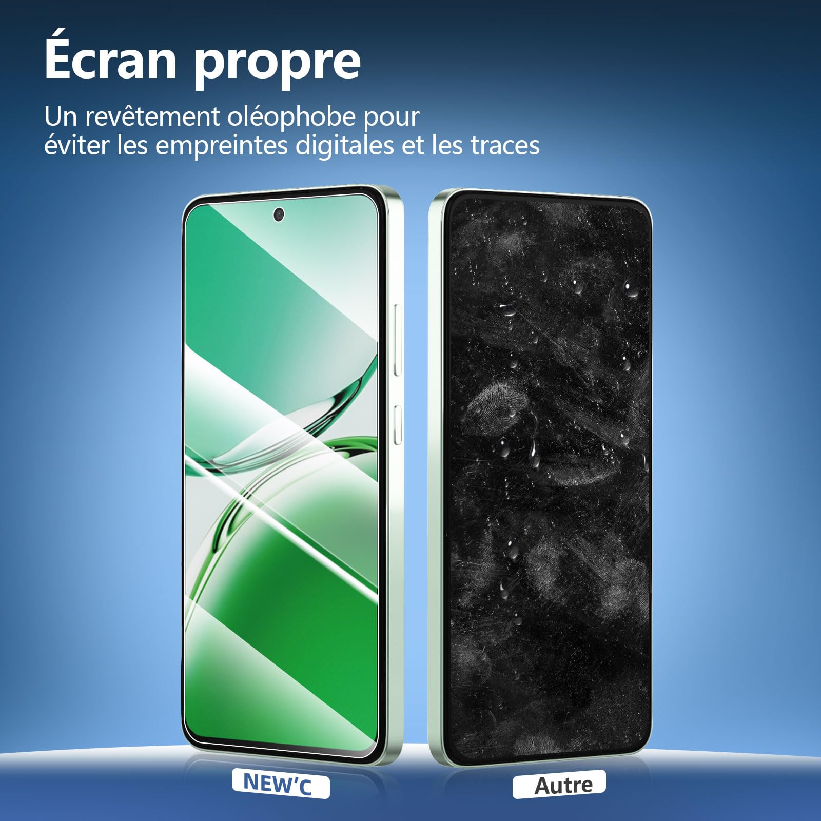 NEW’C Lot de 3, Verre Trempé pour OPPO Reno 13 F / 13 FS 5G/4G, Reno 12 F 4G, Reno 12 FS 5G Film en Protection écran efficace contre les Rayures – Ultra Résistant – Transparent -Dureté 9H Glass