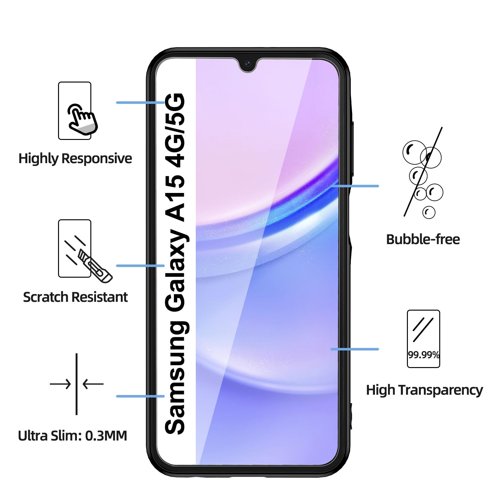 - Le lot contient 2 pièces de protection d’écran en verre trempé pour Samsung Galaxy A15 5G et une coque noir pour Samsung Galaxy A15 5G. Procurez une protection maximale.
